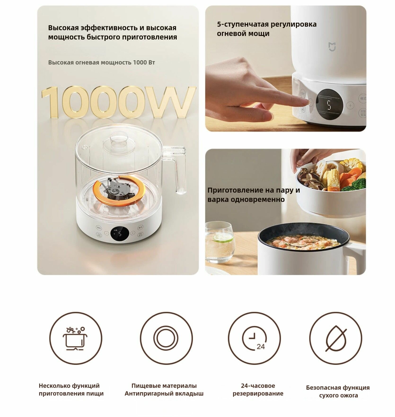 Пароварка электриче Mijia Multifunctional electric cooker 1000W NTC MEC01, черный интересное: