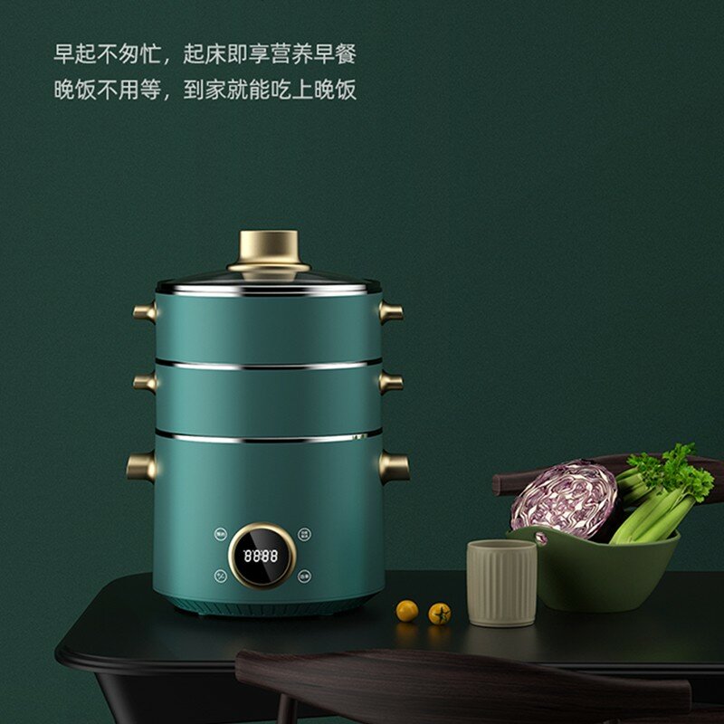 Купить Многофункциональная 3-ярусная электрическая пароварка с автоотключением, цвет Зеленый чай