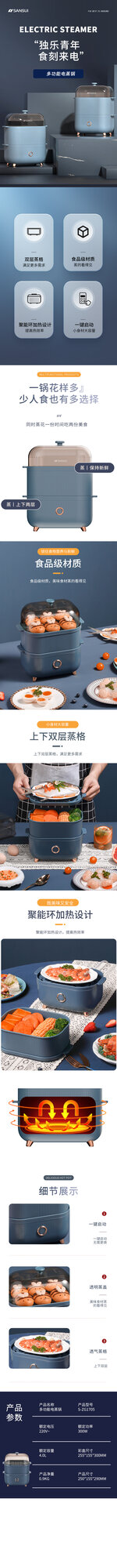 Электрическая пароварка двухъярусная S-ZG1705, синяя интересное:
