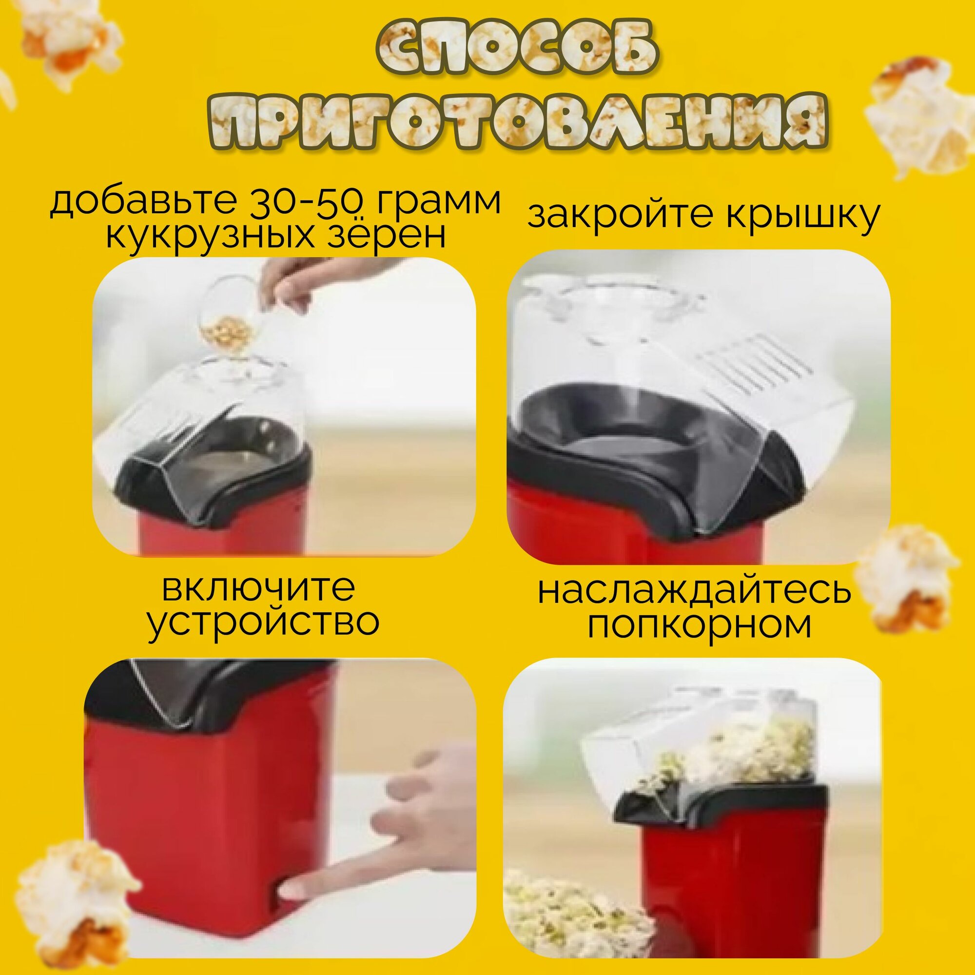 | Подробная комплектация | попкорница; крышка; инструкция |