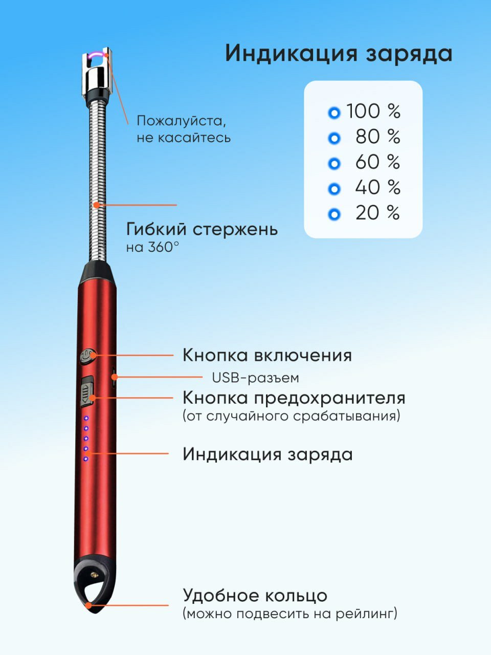 Зажигалка электронная для розжига печей, мангалов, свечей, котлов АГВ, костров. Красный интересное: