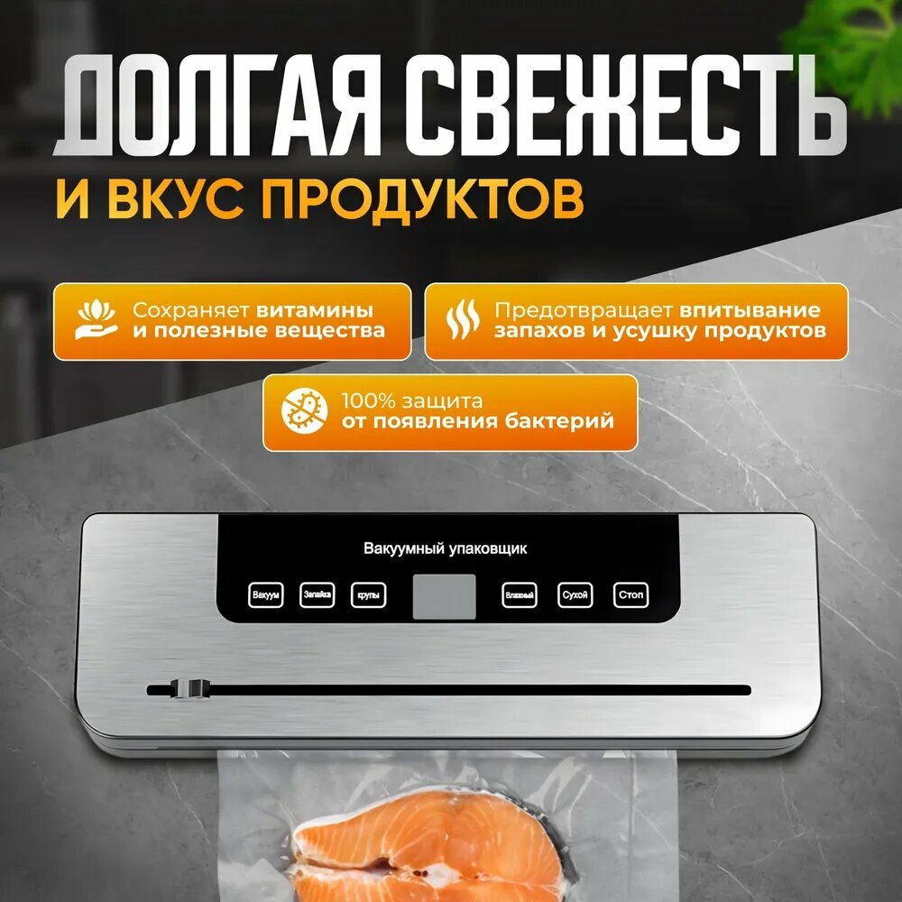 Ниже Вы можете прочитать отзывы на Вакуумный упаковщик вакууматор для продуктов с запайкой с пакетами, ознакомится с подробными характеристиками, посмотреть интересные обзоры и фотографии на Вакуумный упаковщик вакууматор для продуктов с запайкой с пакетами.
