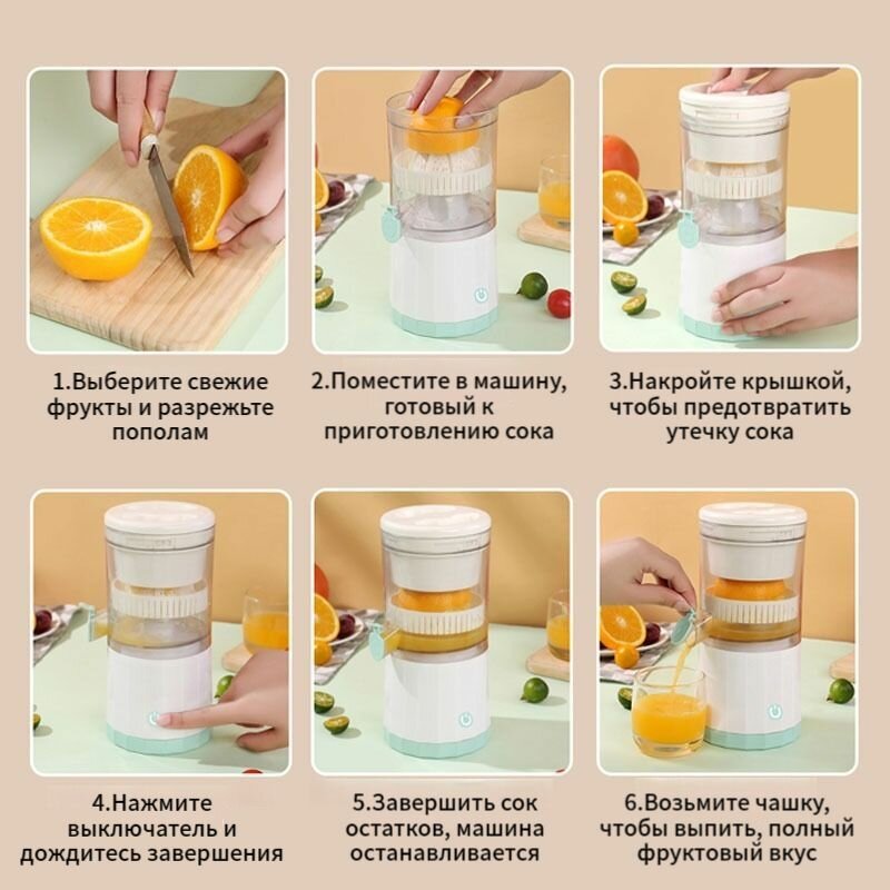 Соковыжималка электрическая, Универсальная для различные фрукты, беспроводной и портативный, белый интересное: