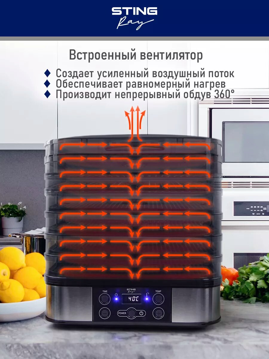 Купить Дегидратор сушилка для овощей электросушилка STINGRAY ST-FD701A 11 поддонов (3 основных + 4 разборных + 2 для пастилы + 2 для ягод) черный жемчуг