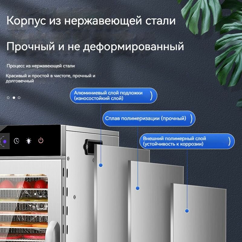 Сушилка для овощей, фруктов и мяса нержавеющая сталь 18лотков 800 Вт Дегидратор интересное: