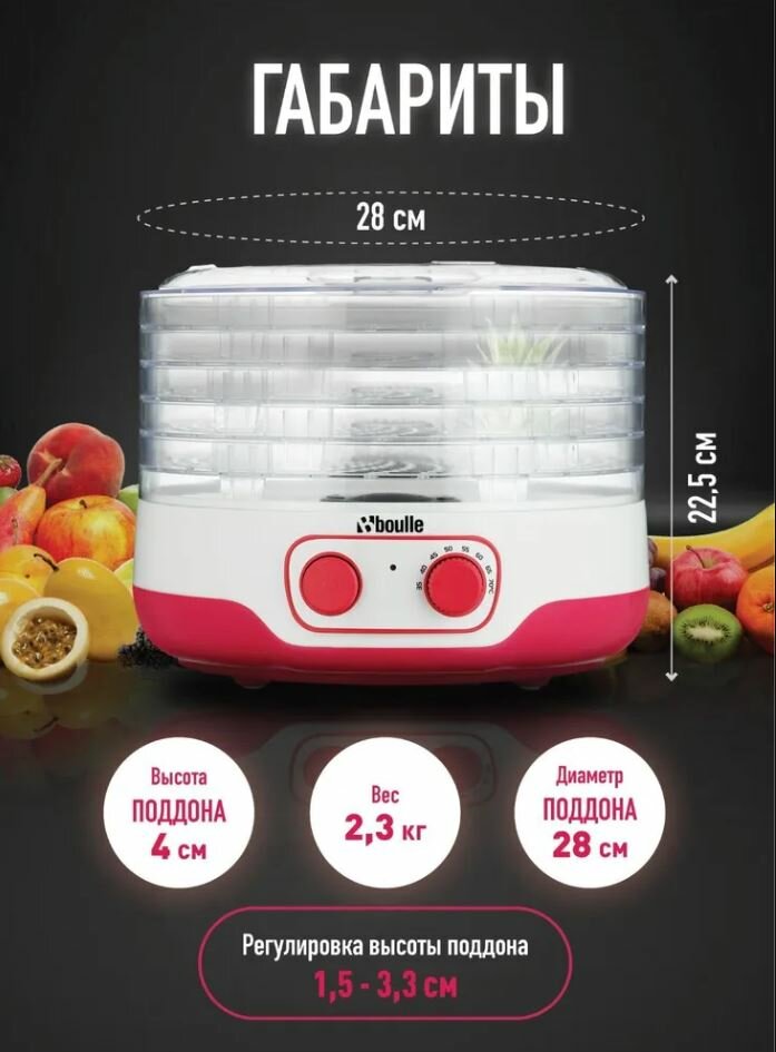 Сушилка для овощей и фруктов электрическая, дегидратор ВOULLE L-200PS 5 уровней, 8 л, бело-красная интересное: