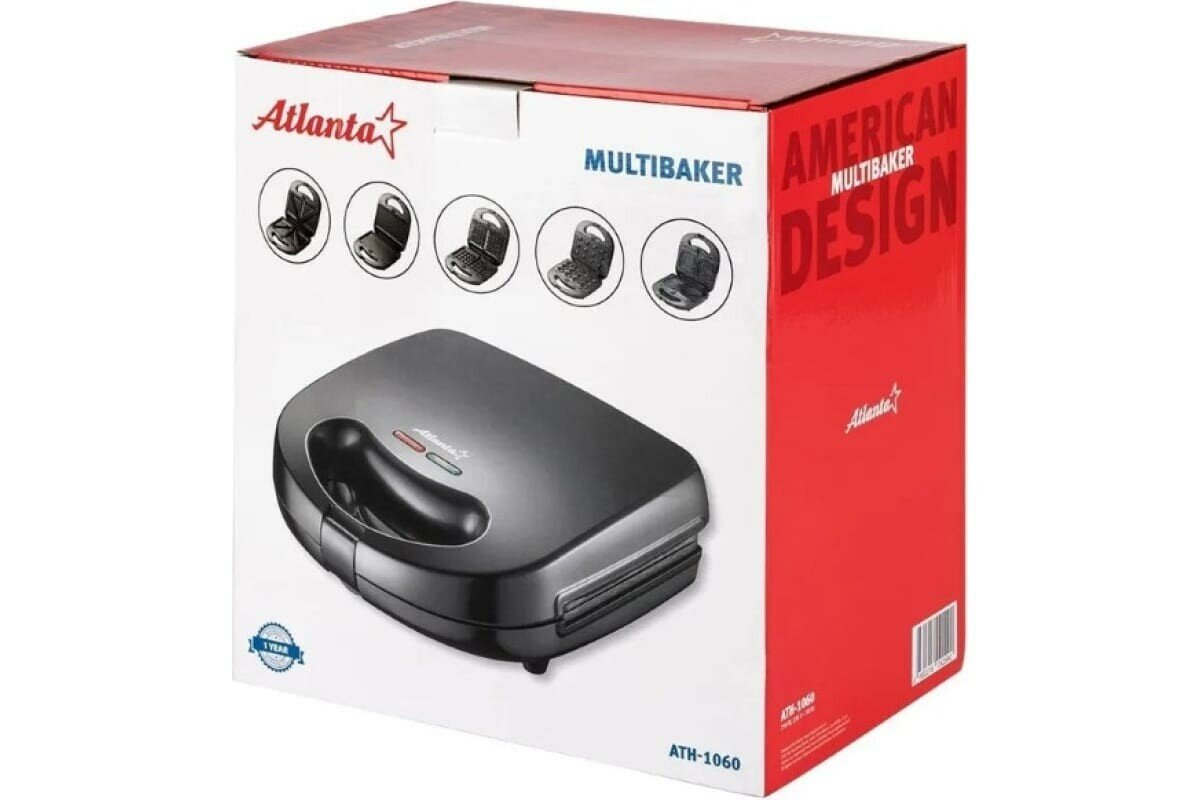 Купить Мультипекарь Atlanta ATH-1060, 5 в 1, сэндвичи / вафли / орешки / гриль / печенья