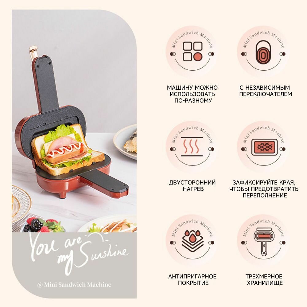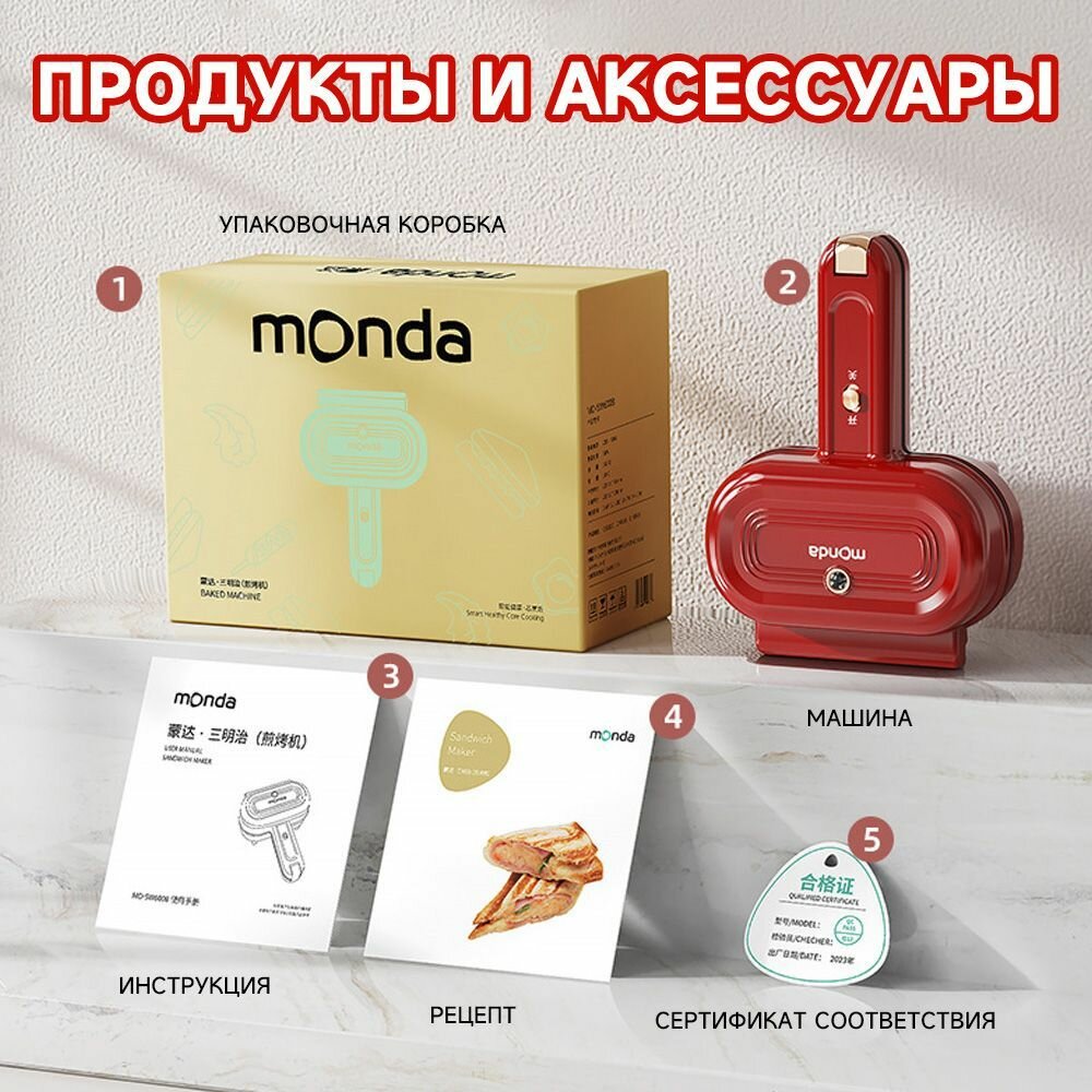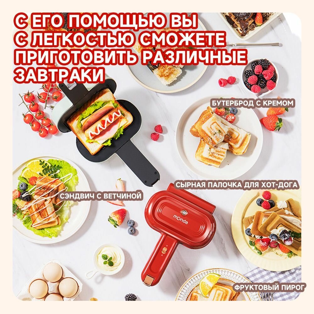 Monda Бутербродница Sandwich breakfast machine 550 Вт, светло-зеленый интересное:
