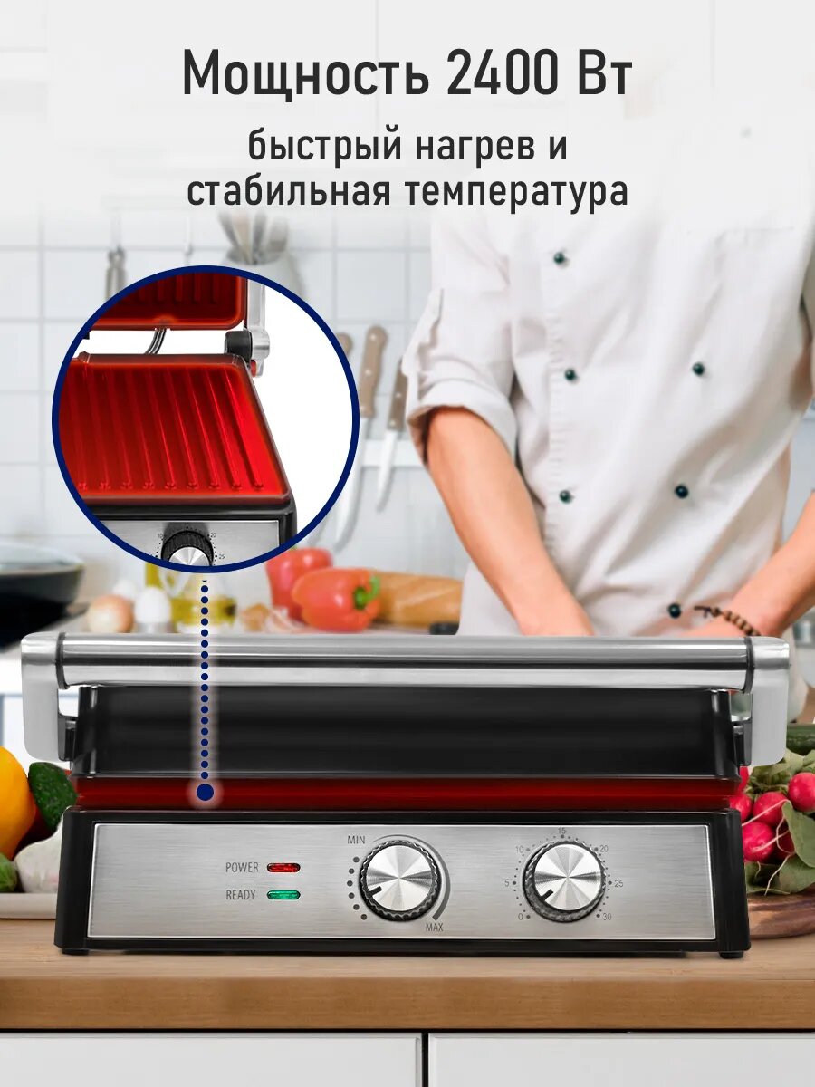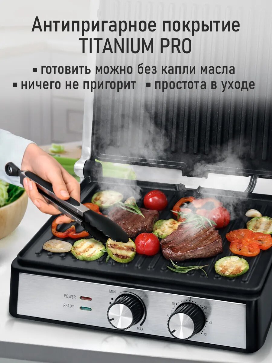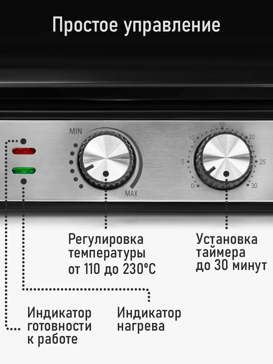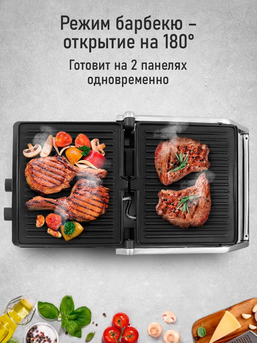 | Дополнительные функции | индикатор включения, поддон для сбор жира, регулируемая высота крышки |