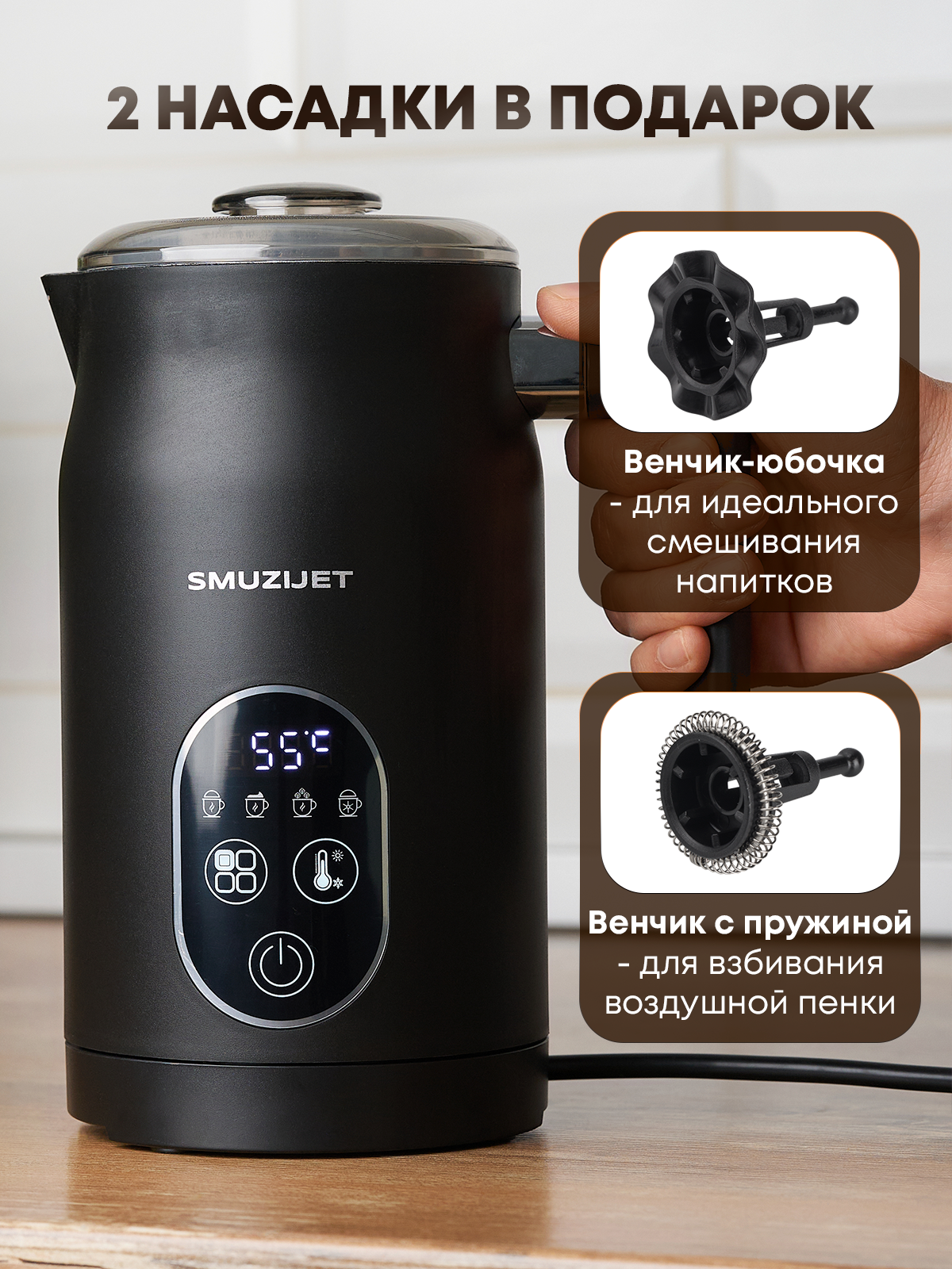 Вспениватель молока SMUZIJET - черный сенсорный (4 режима вспенивания) интересное: