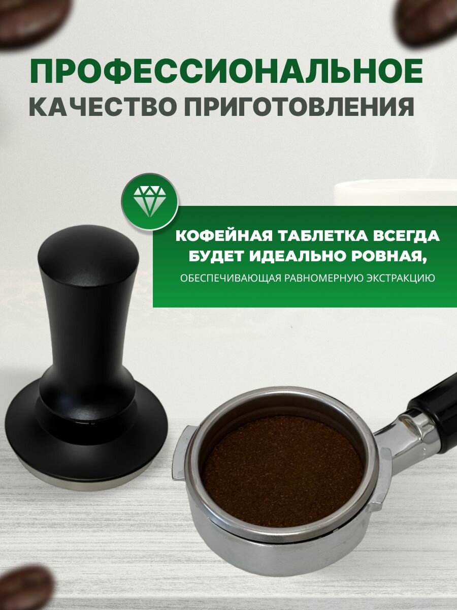 СохранитьТемпер для кофе 58мм, для рожковых кофемашин, нажимной механизм, металл, черный интересное: