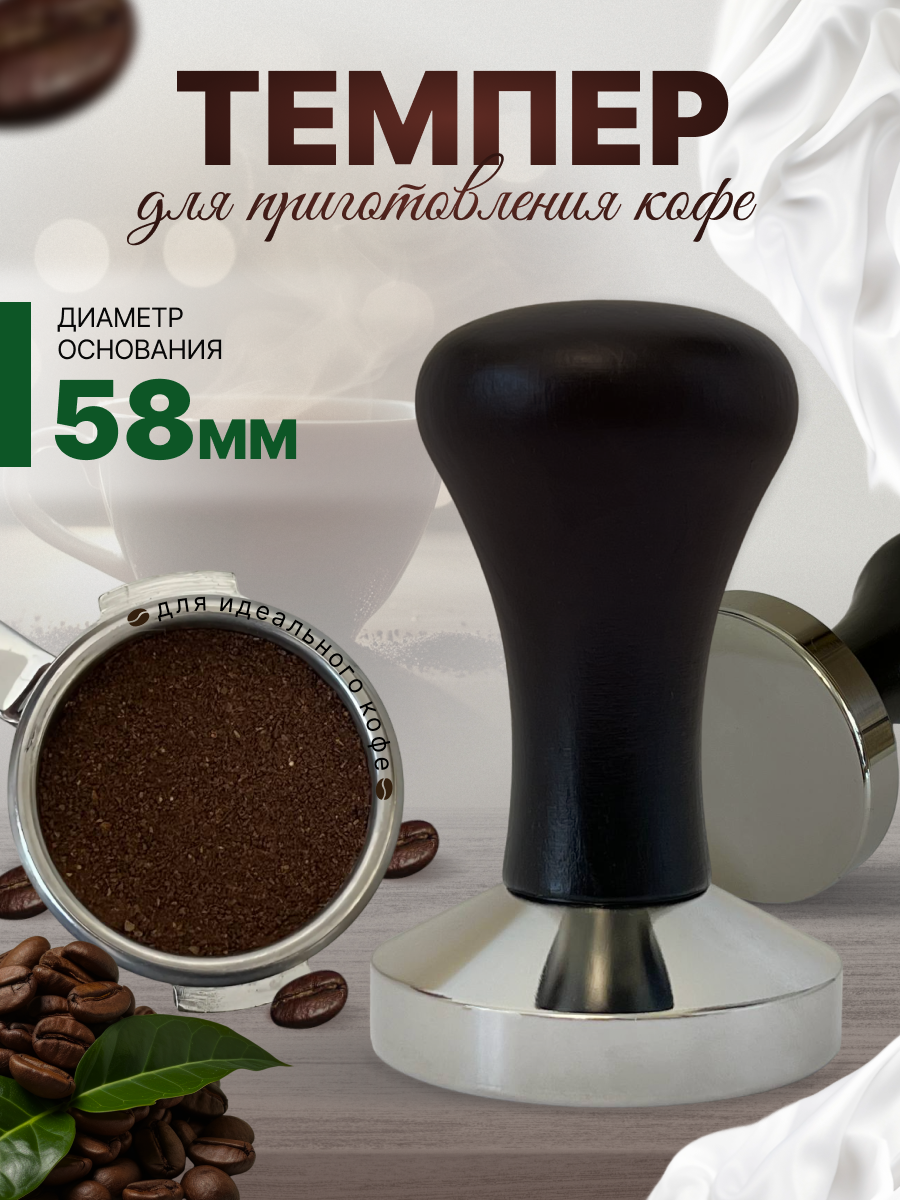 Купить Темпер для кофе, 58мм, сталь, дерево, для рожковой кофеварки, черный