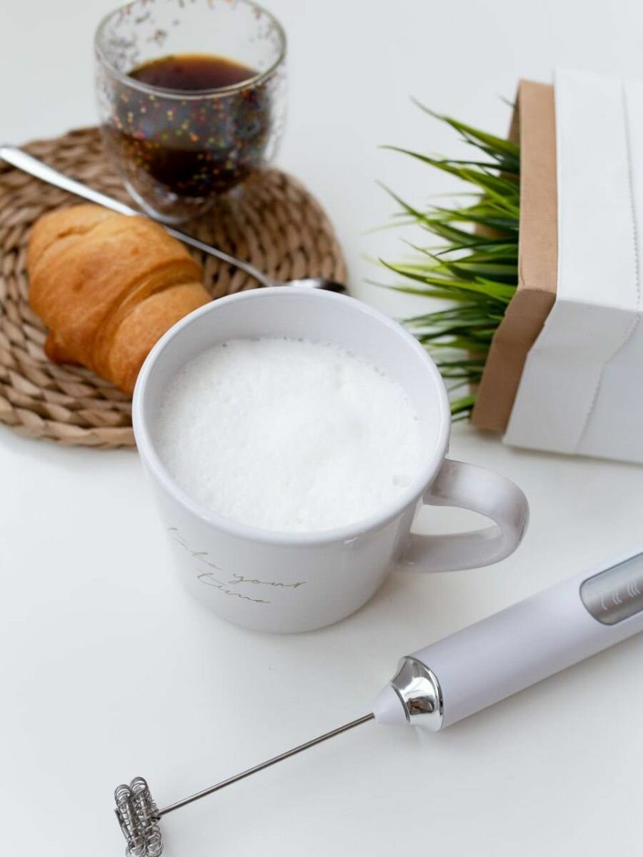 Электрический капучинатор белый вспениватель молока для пенки и кофе на подставке интересное: