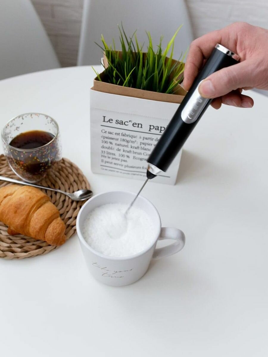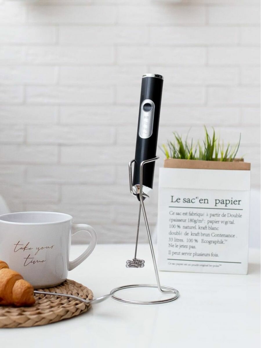 Электрический капучинатор черный вспениватель молока для пенки и кофе на подставке интересное: