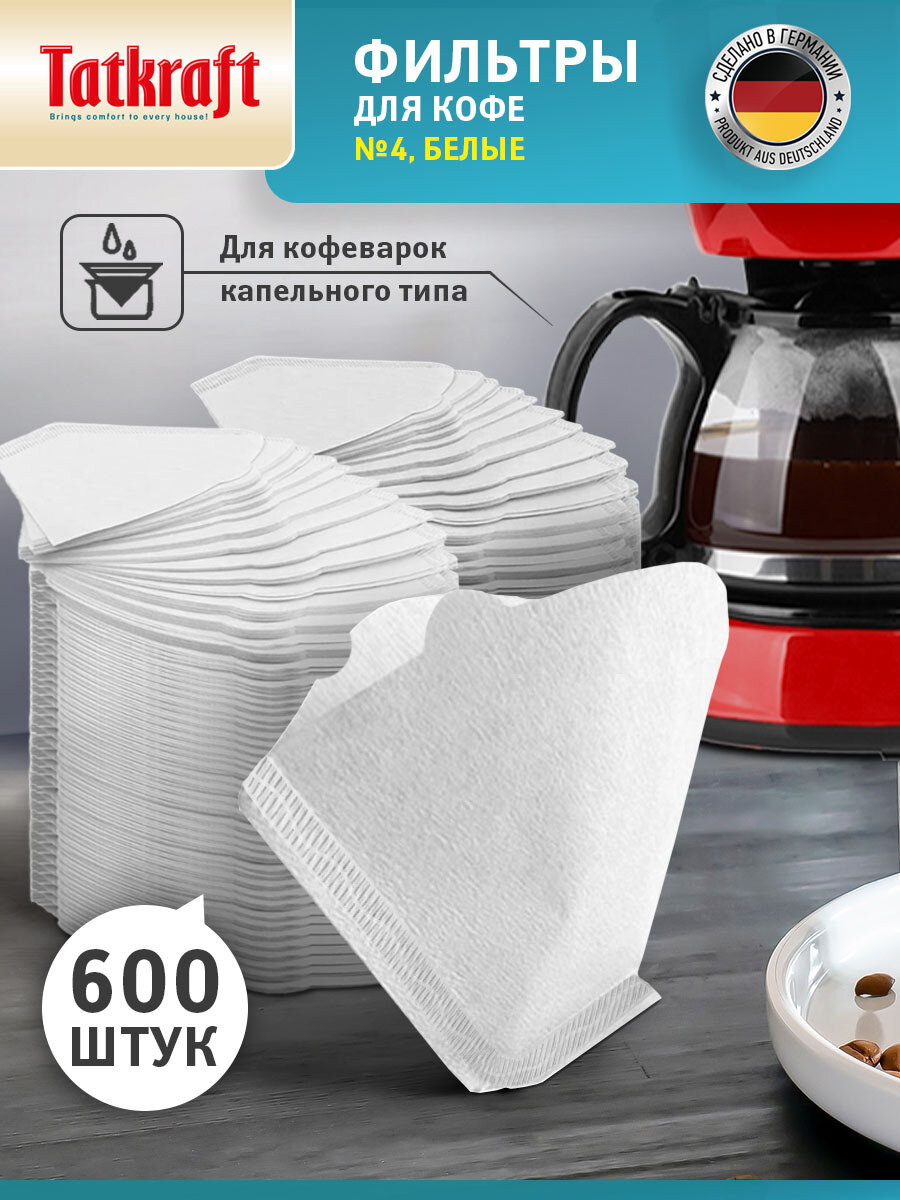Фильтр для кофе № 4 TATKRAFT, бумажные, отбеленные, одноразовые 600 шт интересное: