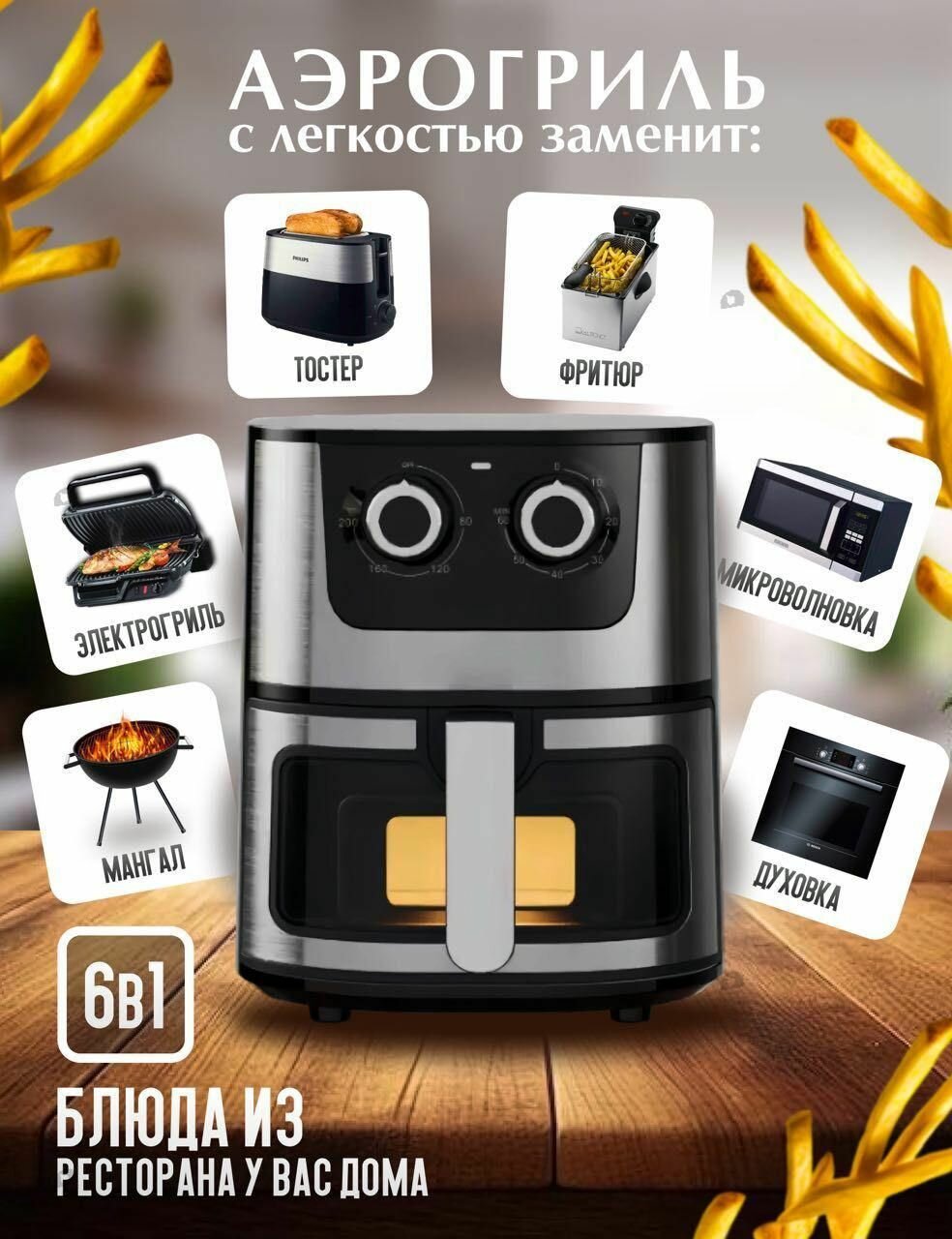 Тихий аэрогриль с турбонагревом 2800 Вт, 9 программ и смотровым окном для контроля готовки интересное: