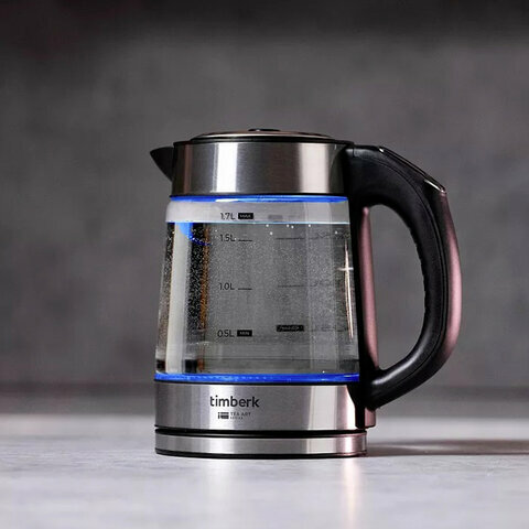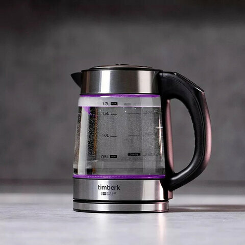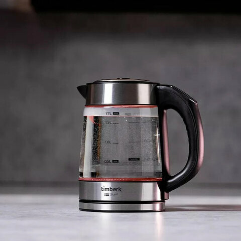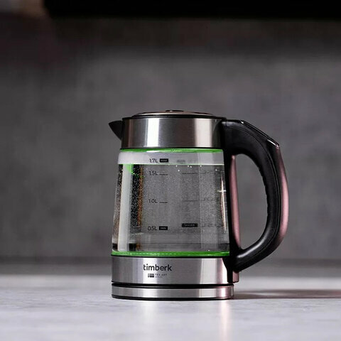Чайник TIMBERK T-EK27G03, 1,7 л, 2200 Вт, закрытый нагревательный элемент, терморегулятор, стекло, стальной интересное:
