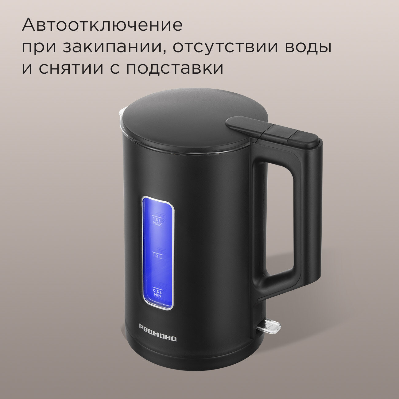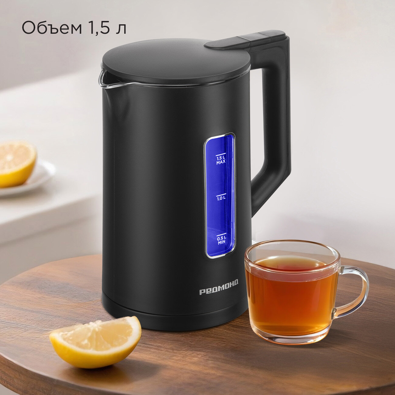 Электрический чайник со стеклянной колбой РЕДМОНД KG255, 1,5 л, LED-подсветка, автоотключение, поворот 360°, черный интересное: