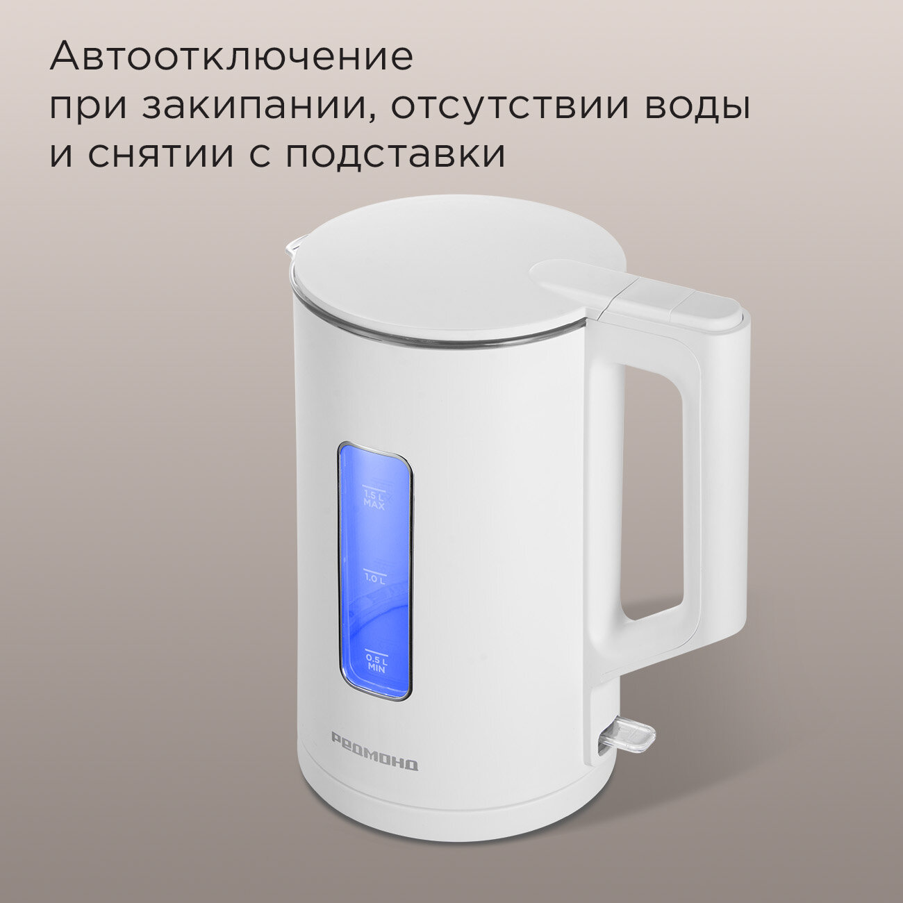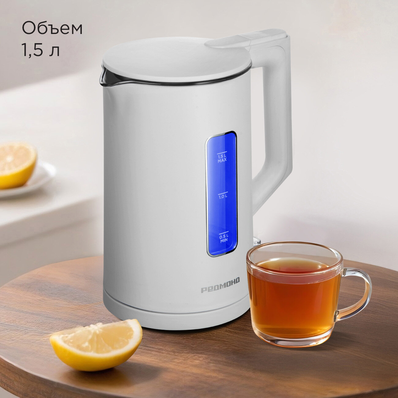 Электрический чайник со стеклянной колбой РЕДМОНД KG255, 1,5 л, LED-подсветка, автоотключение, поворот 360°, белый интересное: