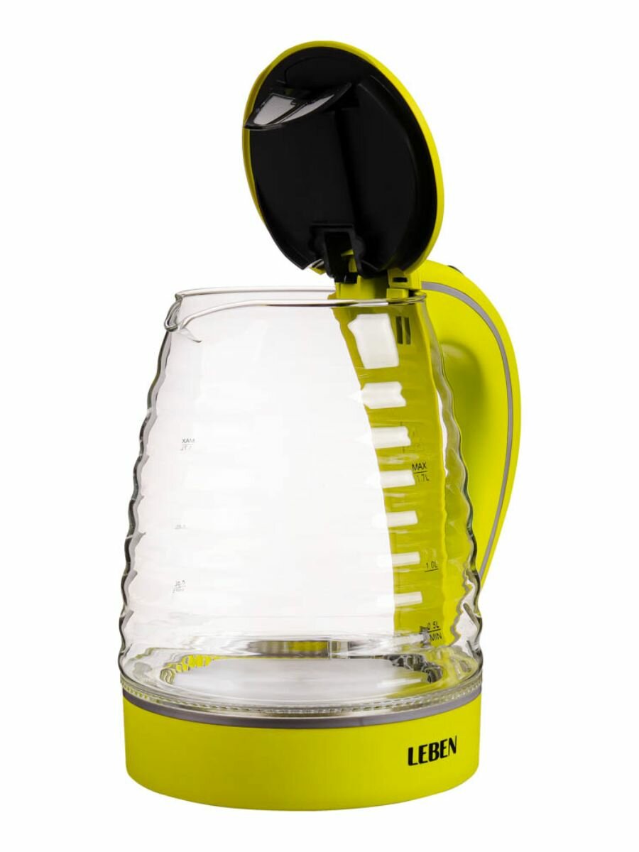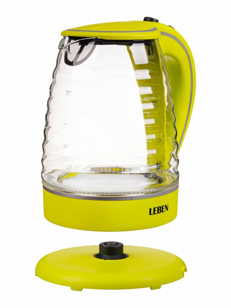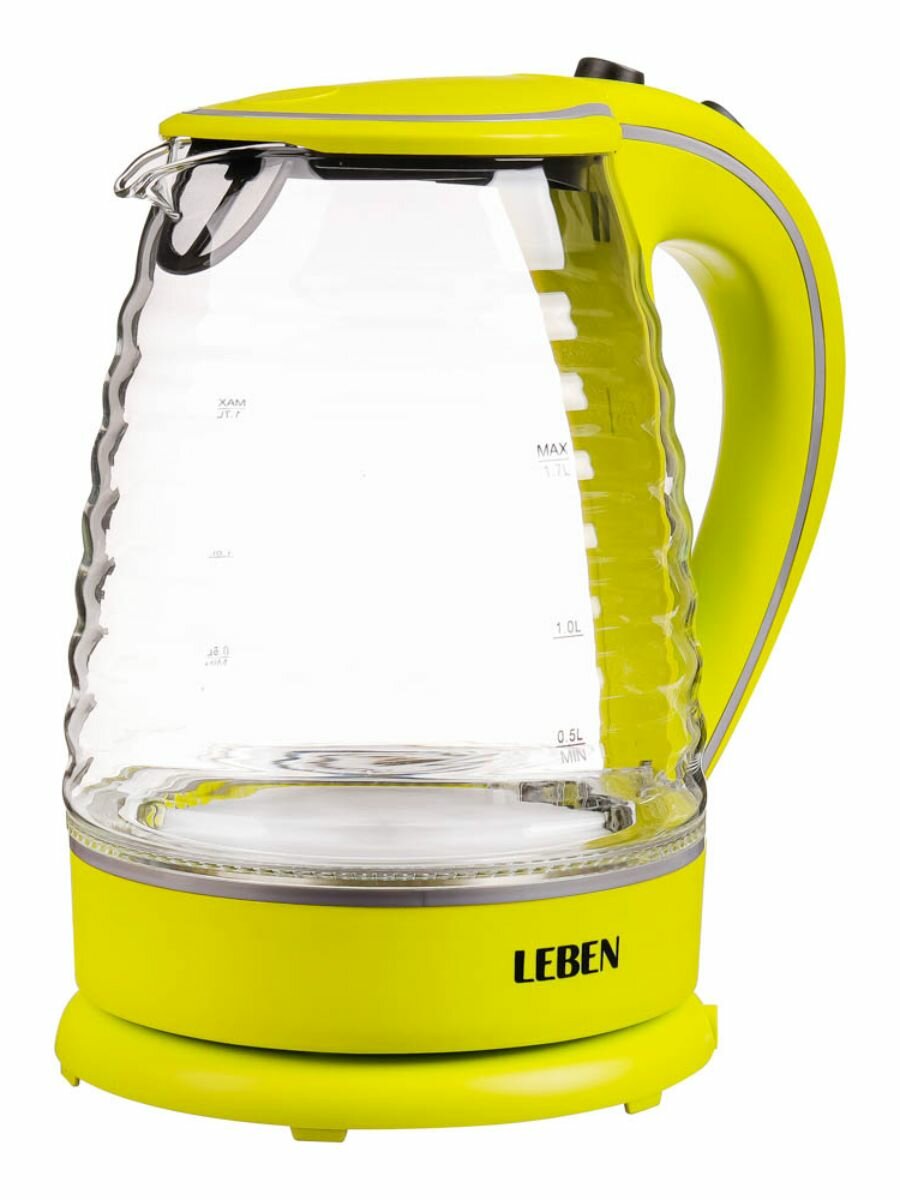 LEBEN Чайник электрический со стеклянной колбой, 1850 Вт, 1,7л