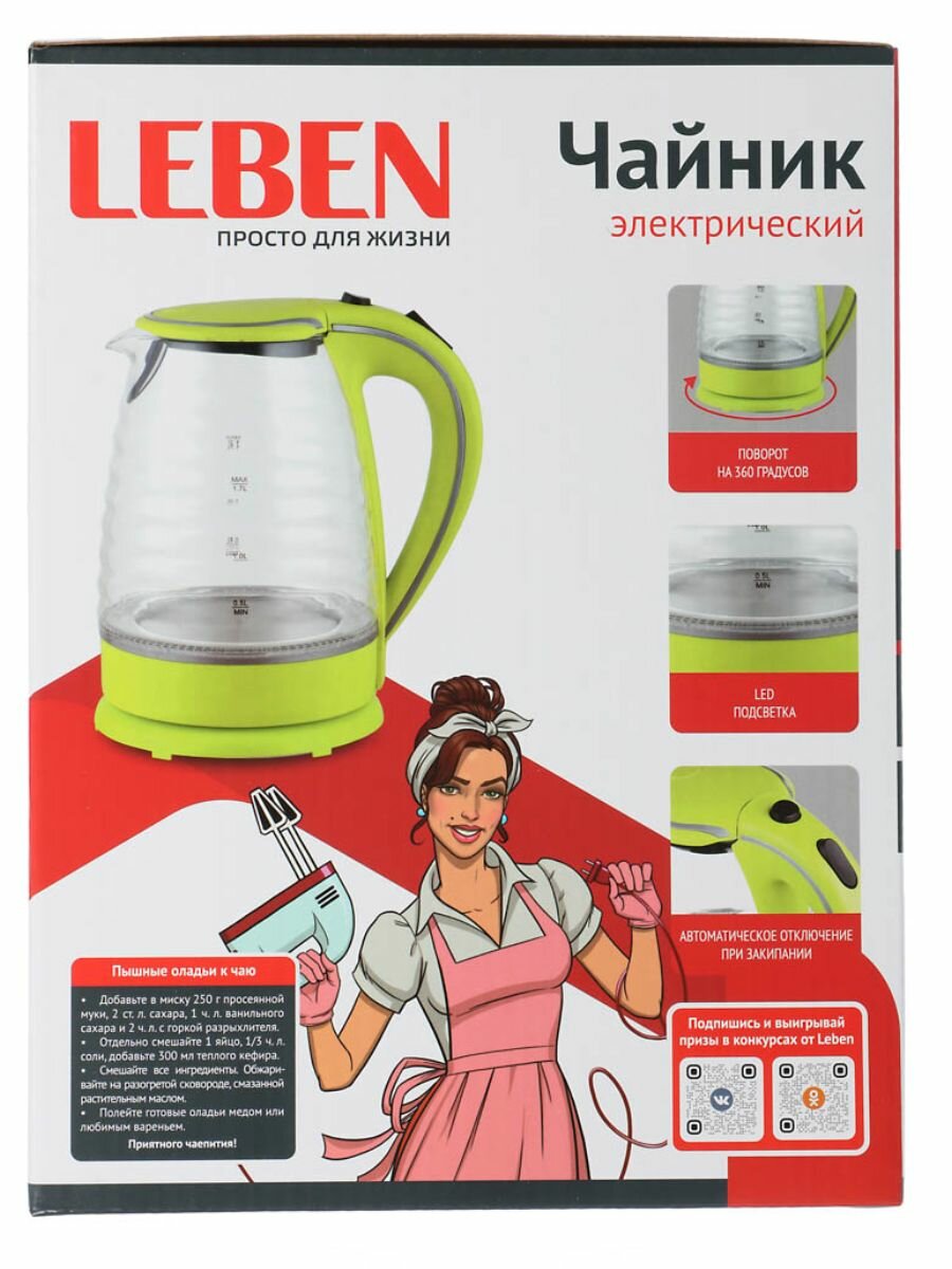 Ниже Вы можете прочитать отзывы на Чайник электрический LEBEN 1,7 л, 1850 Вт, скрытый нагревательный элемент, стекло, рифлёное стекло, ознакомится с подробными характеристиками, посмотреть интересные обзоры и фотографии на Чайник электрический LEBEN 1,7 л, 1850 Вт, скрытый нагревательный элемент, стекло, рифлёное стекло.