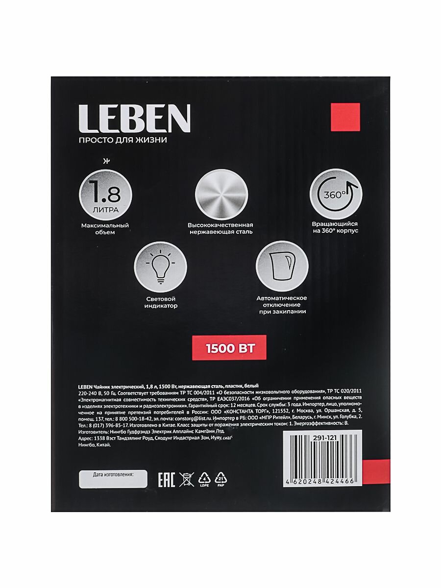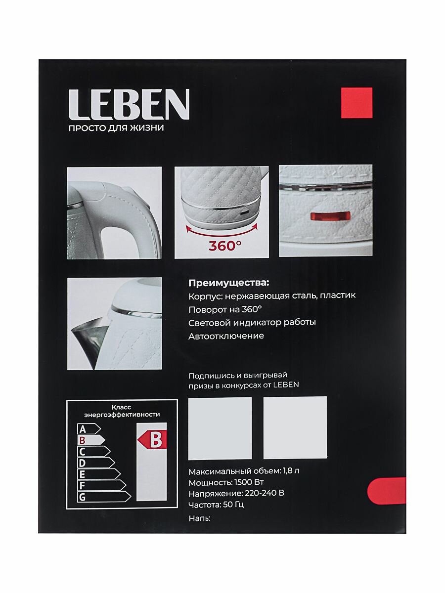 Чайник электрический, 1,8 л, 1500 Вт, LEBEN интересное: