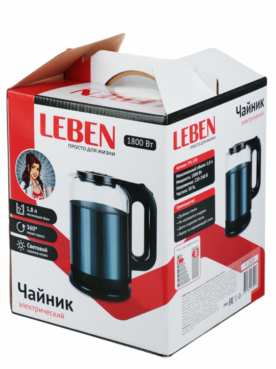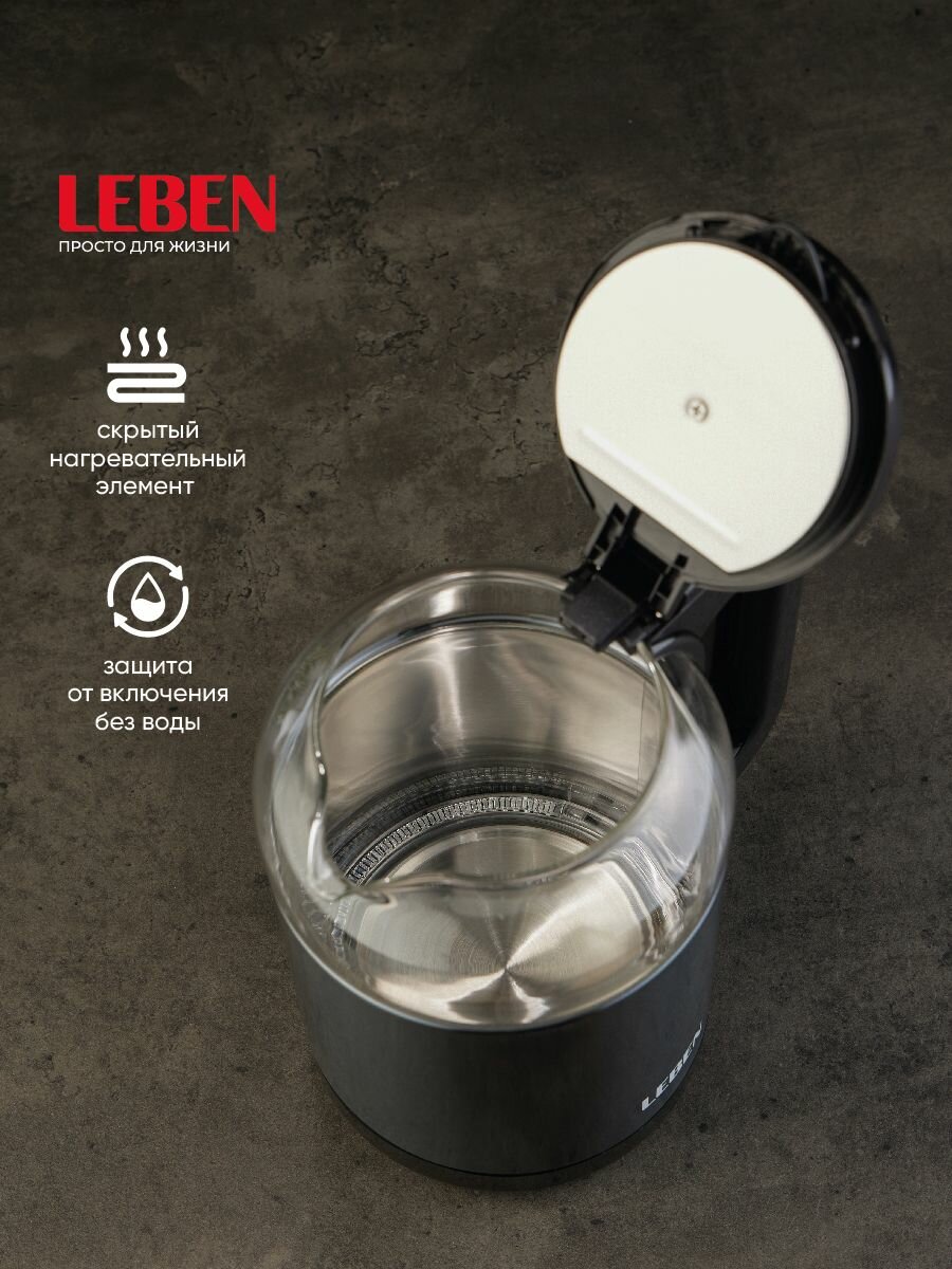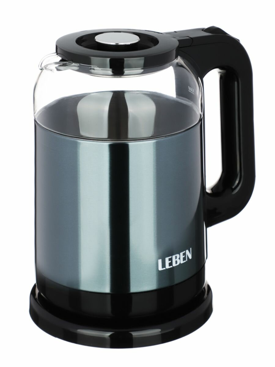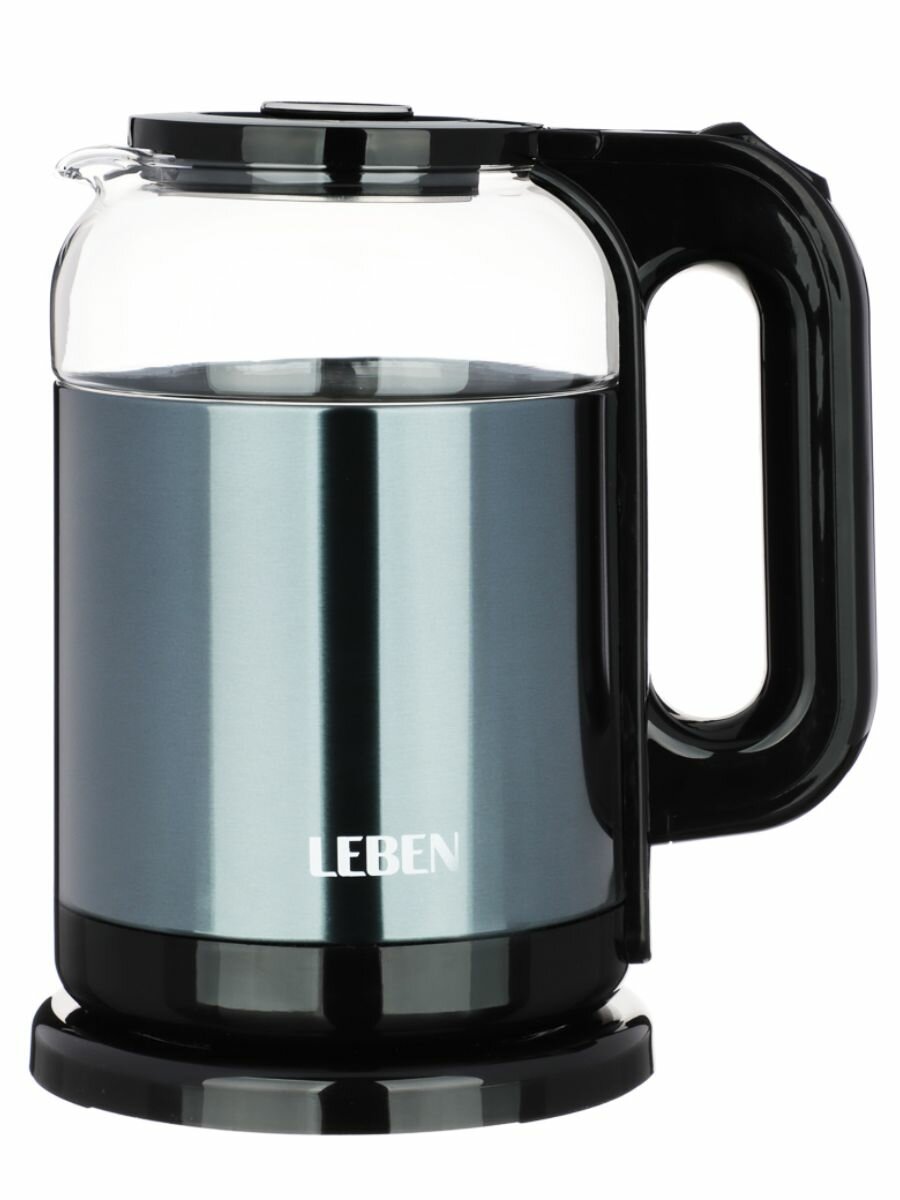 LEBEN Чайник электрический со стеклянной колбой, 1850 Вт, 1,7л