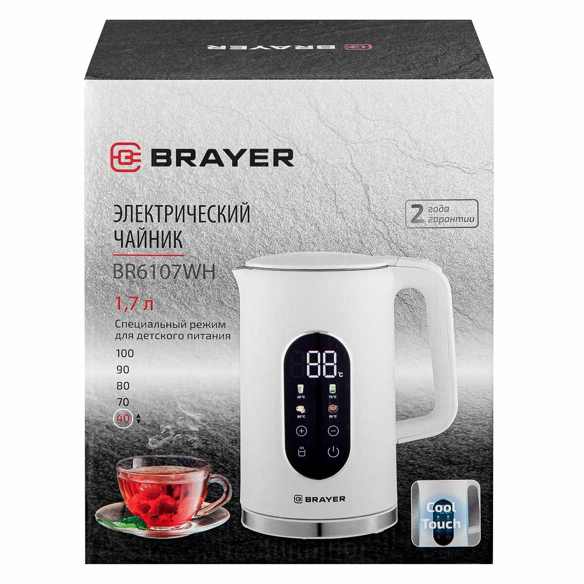 Чайник электрический BRAYER BR6107WH, 2200 Вт, 1,7 л, Cool Touch, cенсорное управл, автоотключ интересное: