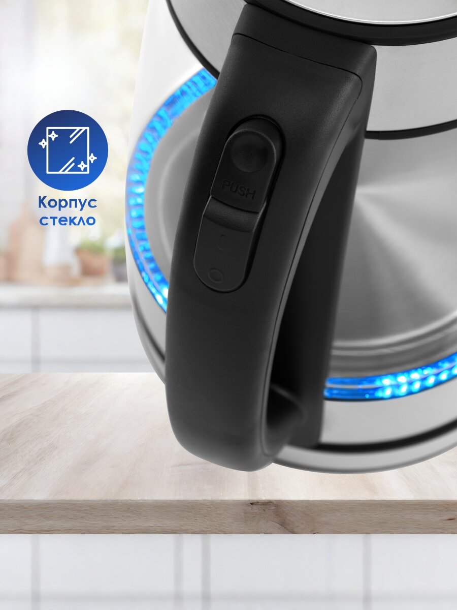 Электрочайник HARPER HWK-GM03, серебристый (нерж. сталь)/прозрачное стекло интересное: