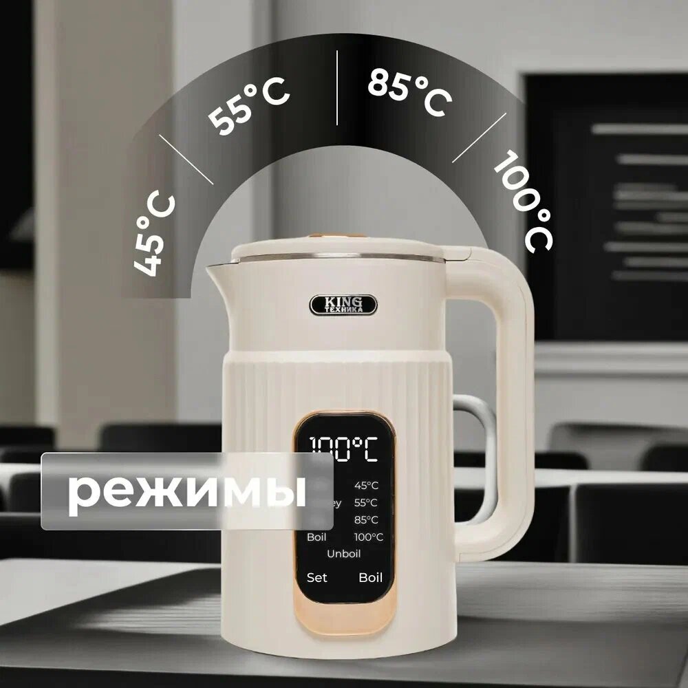 Уникалный ! Чайник с LCD дисплеем, датчиком температуры на сенсорном управлении, 1,8 л, 2000 Вт, бежевый интересное: