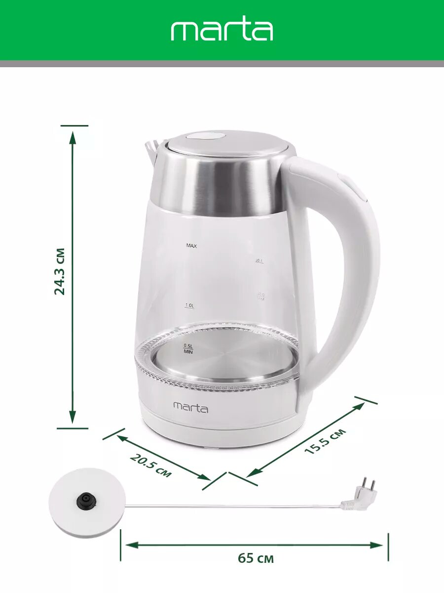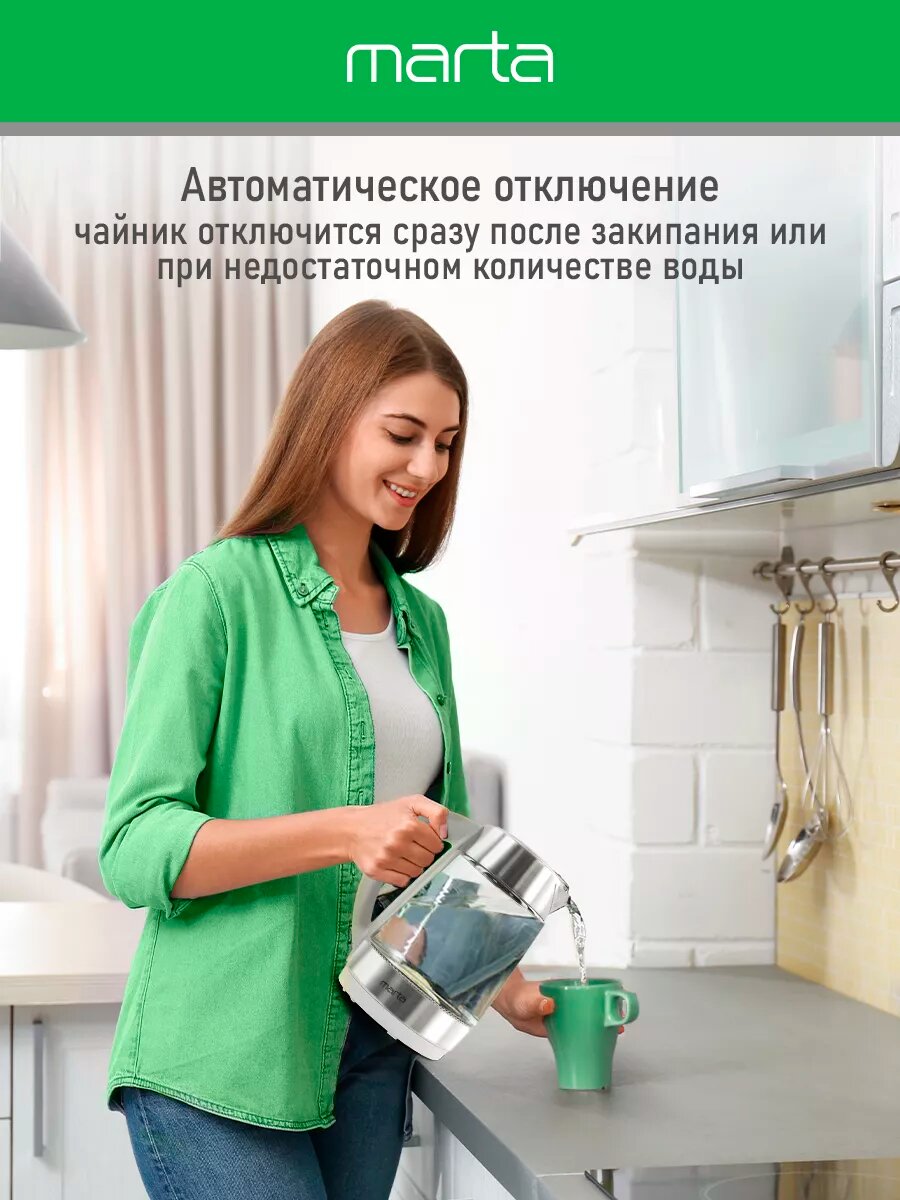 Электрический чайник MARTA MT-4610 белый стеклянный с подсветкой, 1,8 л интересное: