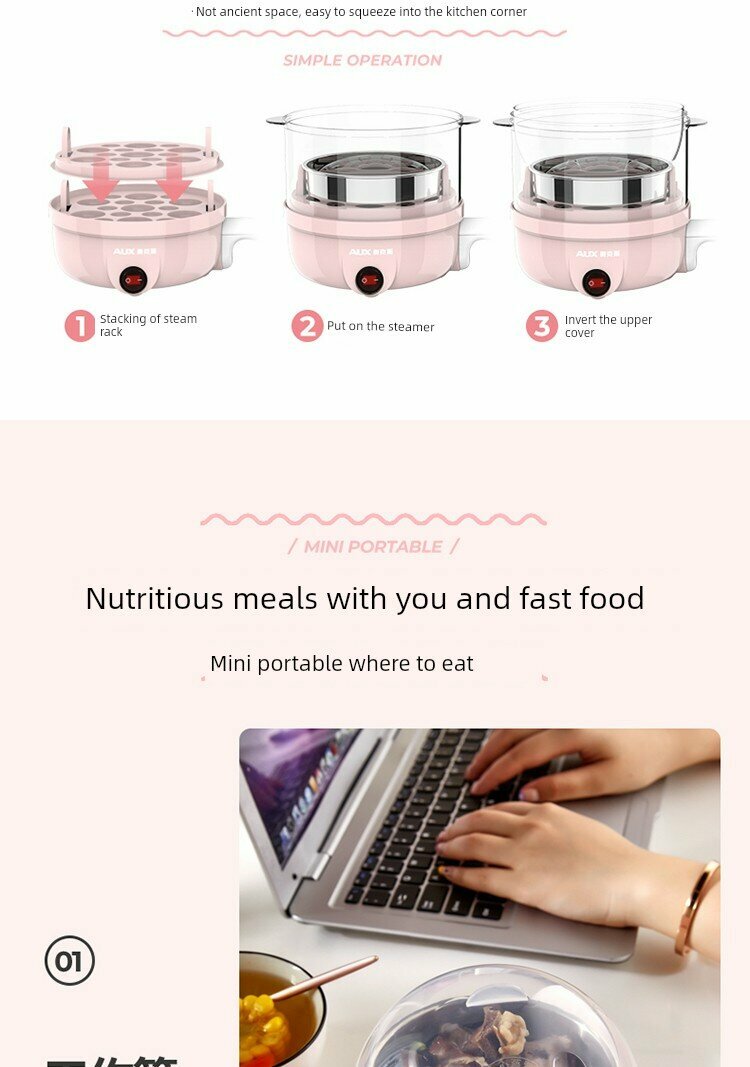 | Дополнительная информация | автоматическое отключение питания, пароварка из нержавеющей стали 304, антипригарное шасси, двухъярусная конфигурация, съемная очистка, низкая мощность 350 вт, защита от сухого горения, многофункциональная готовка и жарка, двухслойная конструкция, защитная гильза от поражения электрическим током |