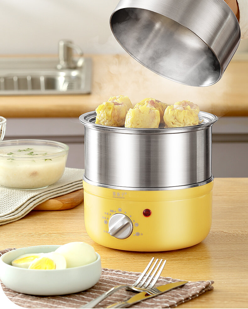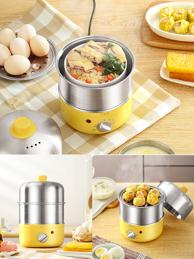 Купить Двухслойная автоматическая пароварка для яиц из нержавеющей стали, желтая, с чашей для варки на пару