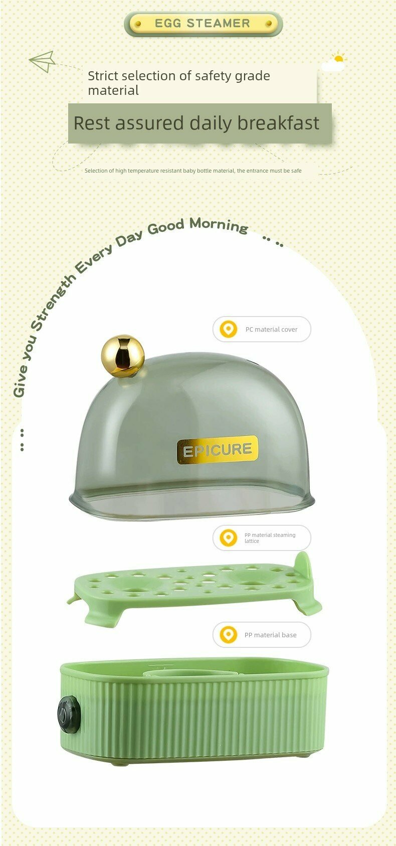 | Материал корпуса | PC материал крышки, PP материал паровой решетки, PP материал основания |
