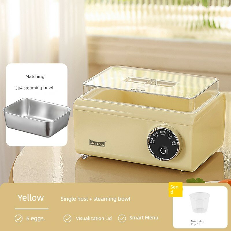Автоматическая яйцеварка-пароварка - Желтая яйцеварка + PP пароварка + 304 чаша для приготовления на пару