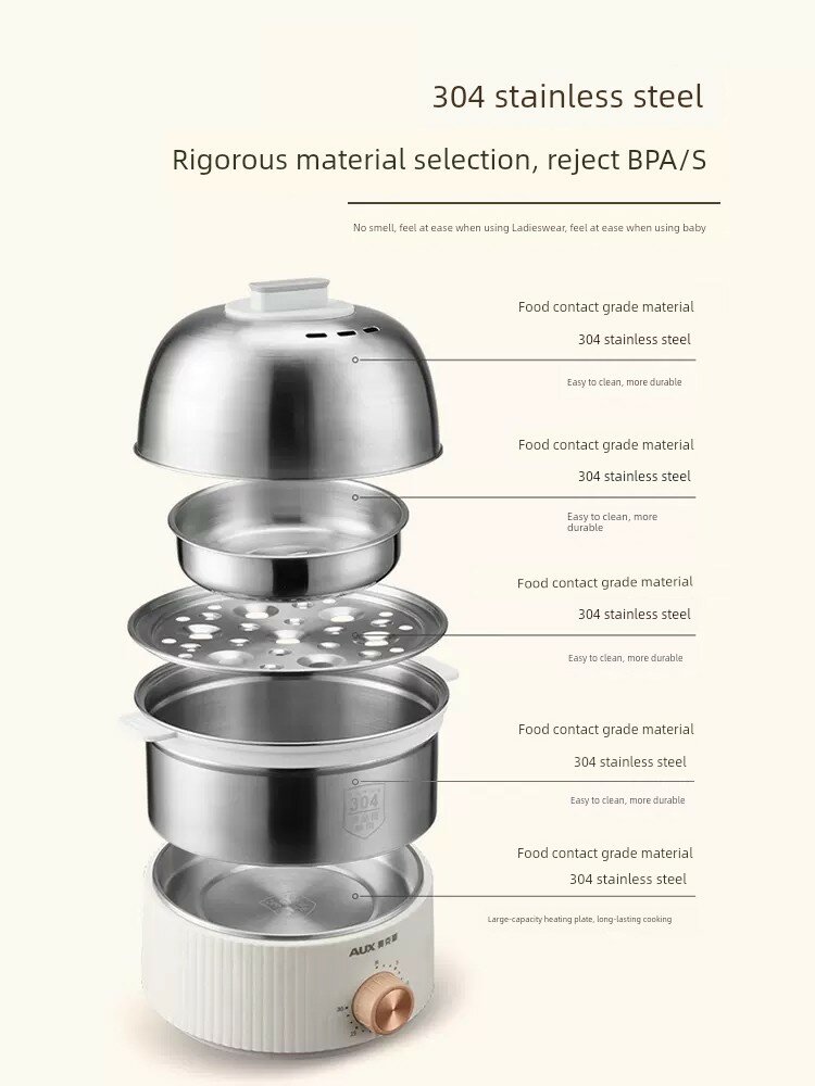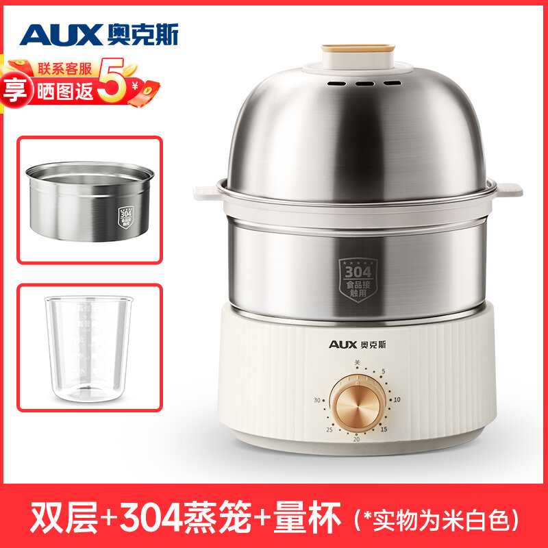 Купить Двухъярусная кремово-белая яйцеварка с таймером и углубленным дном