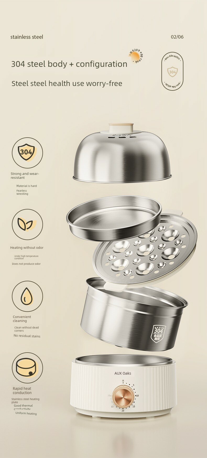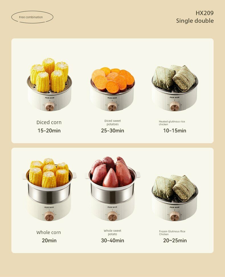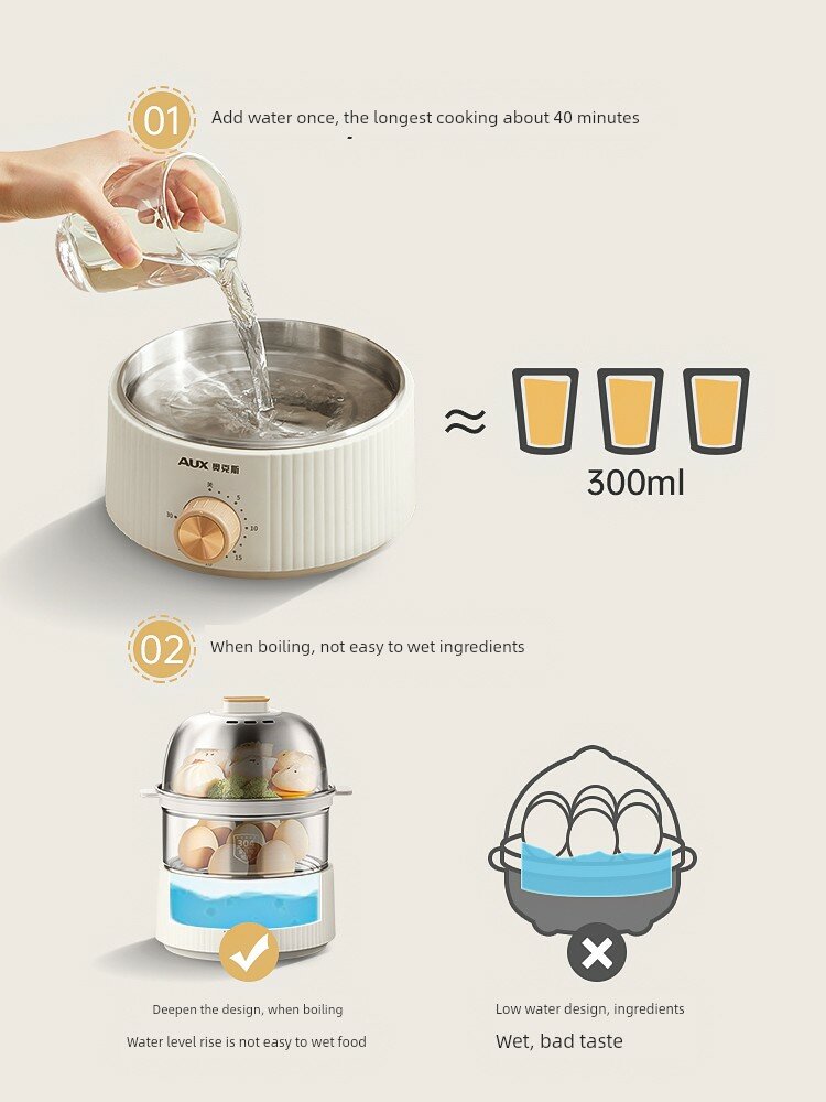 Двухъярусная яйцеварка с кремово-белым корпусом, углубленным дном и таймером + пароварка