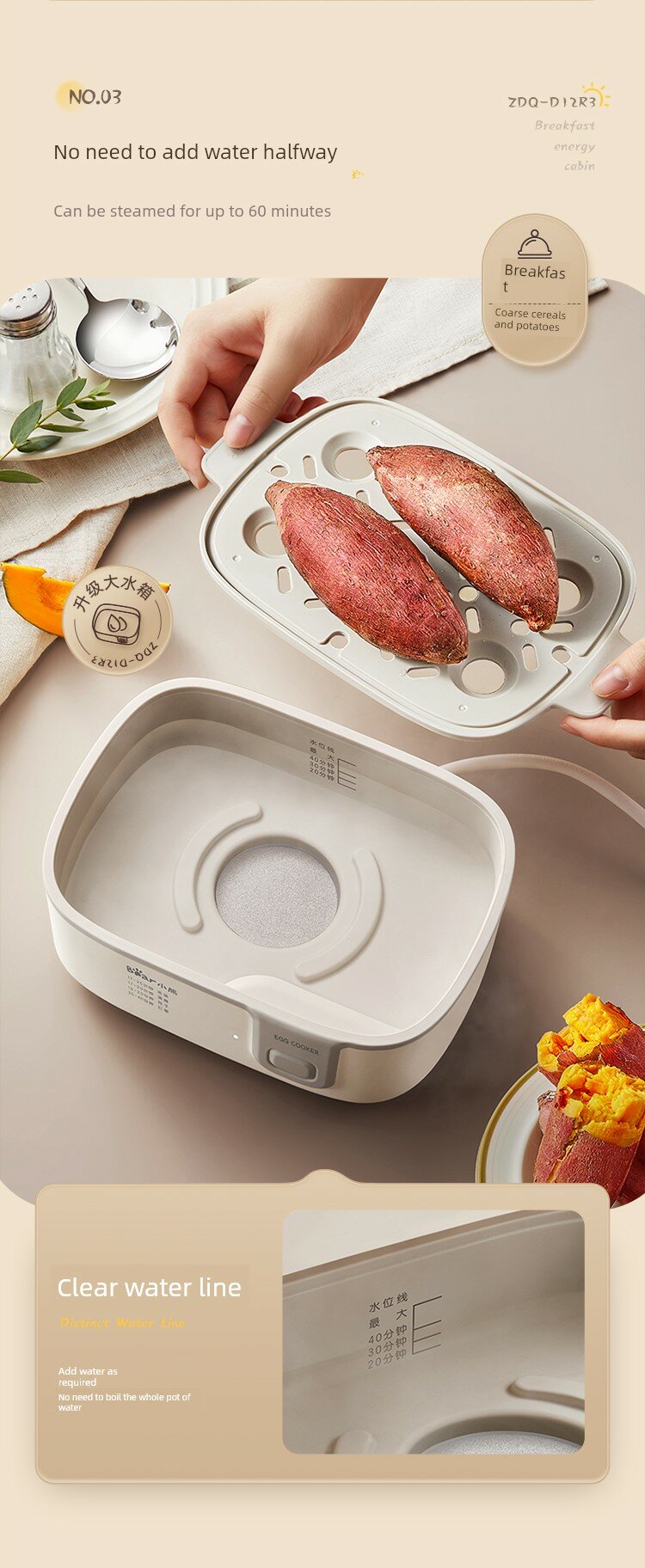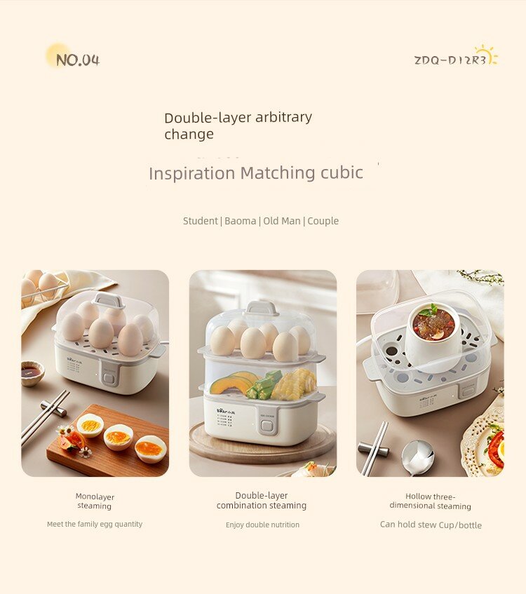 | Дополнительная информация | пароварка из нержавеющей стали 304, углубленная и утолщенная, прихватки, подставка для яиц, можно готовить на пару 5 яиц, управление одной кнопкой, цикличный стереонагрев, защита от перегрева, контроль температуры PTC, энергосбережение |