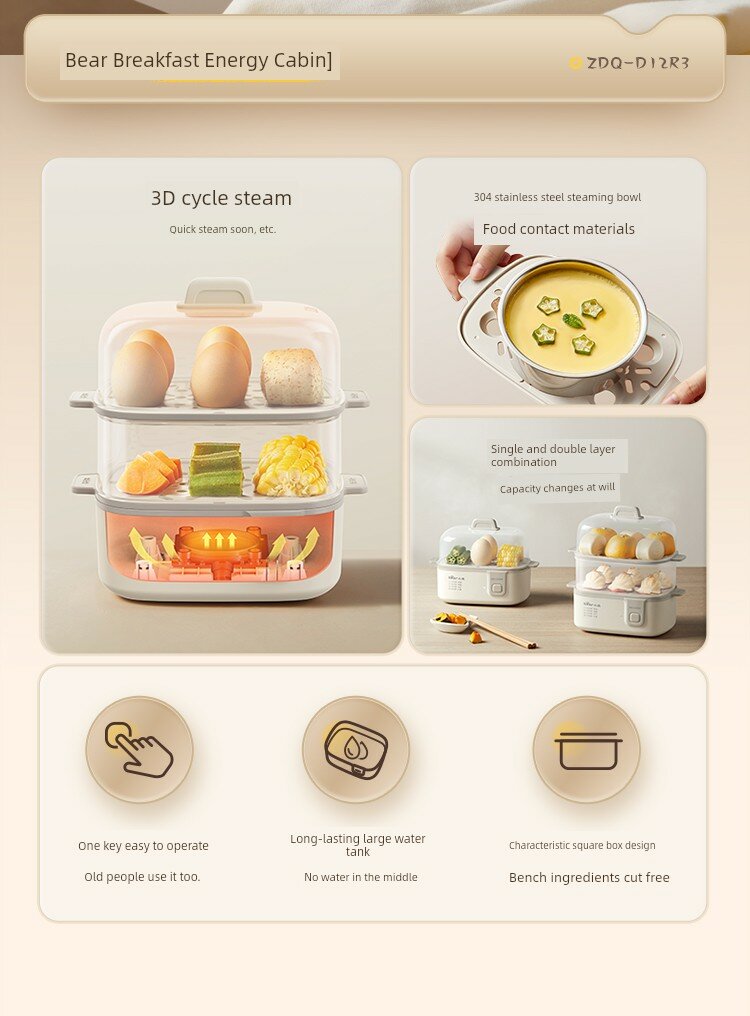 | Дополнительная информация | пароварка из нержавеющей стали 304, углубленная и утолщенная, прихватки, подставка для яиц, можно готовить на пару 5 яиц, управление одной кнопкой, цикличный стереонагрев, защита от перегрева, контроль температуры PTC, энергосбережение |