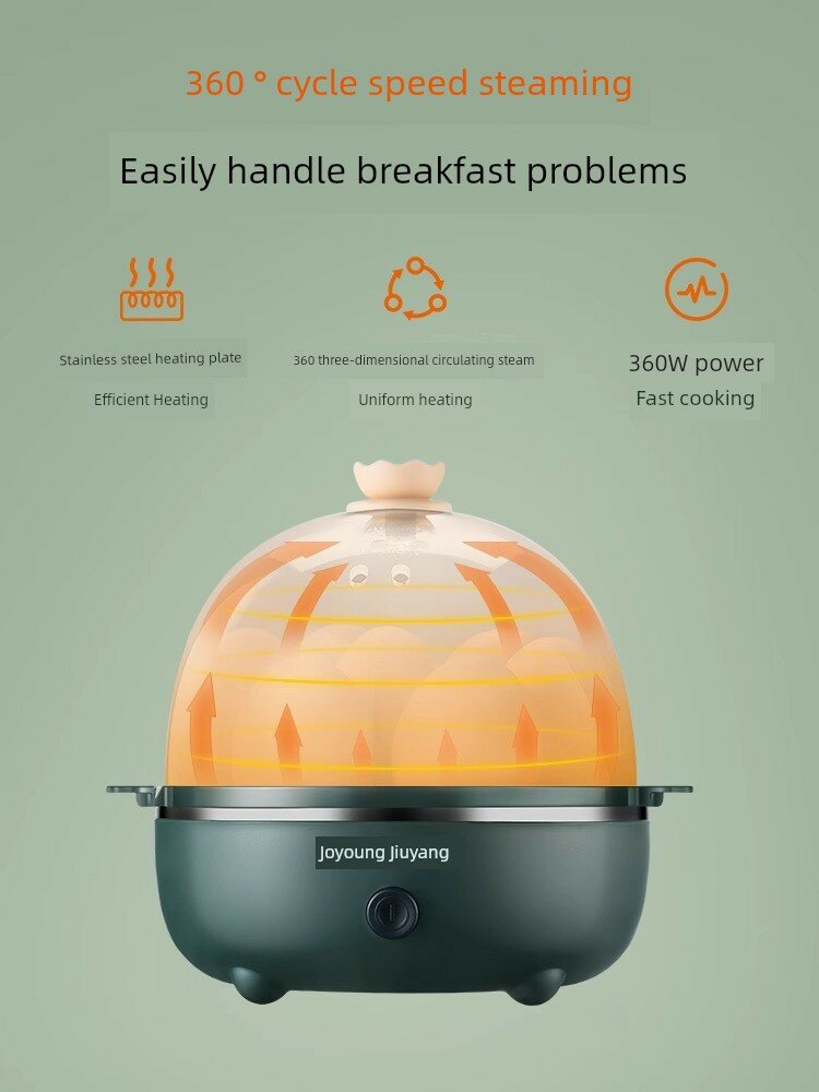 | Дополнительная информация | приготовление на пару, вареные яйца, 220В, вместимость 5 яиц, вместимость 6 яиц, нагревательная пластина 304, крышка из полипропилена, лоток для яиц из полипропилена, мощность 360Вт, защита от сухого горения, переключатель с одной кнопкой |