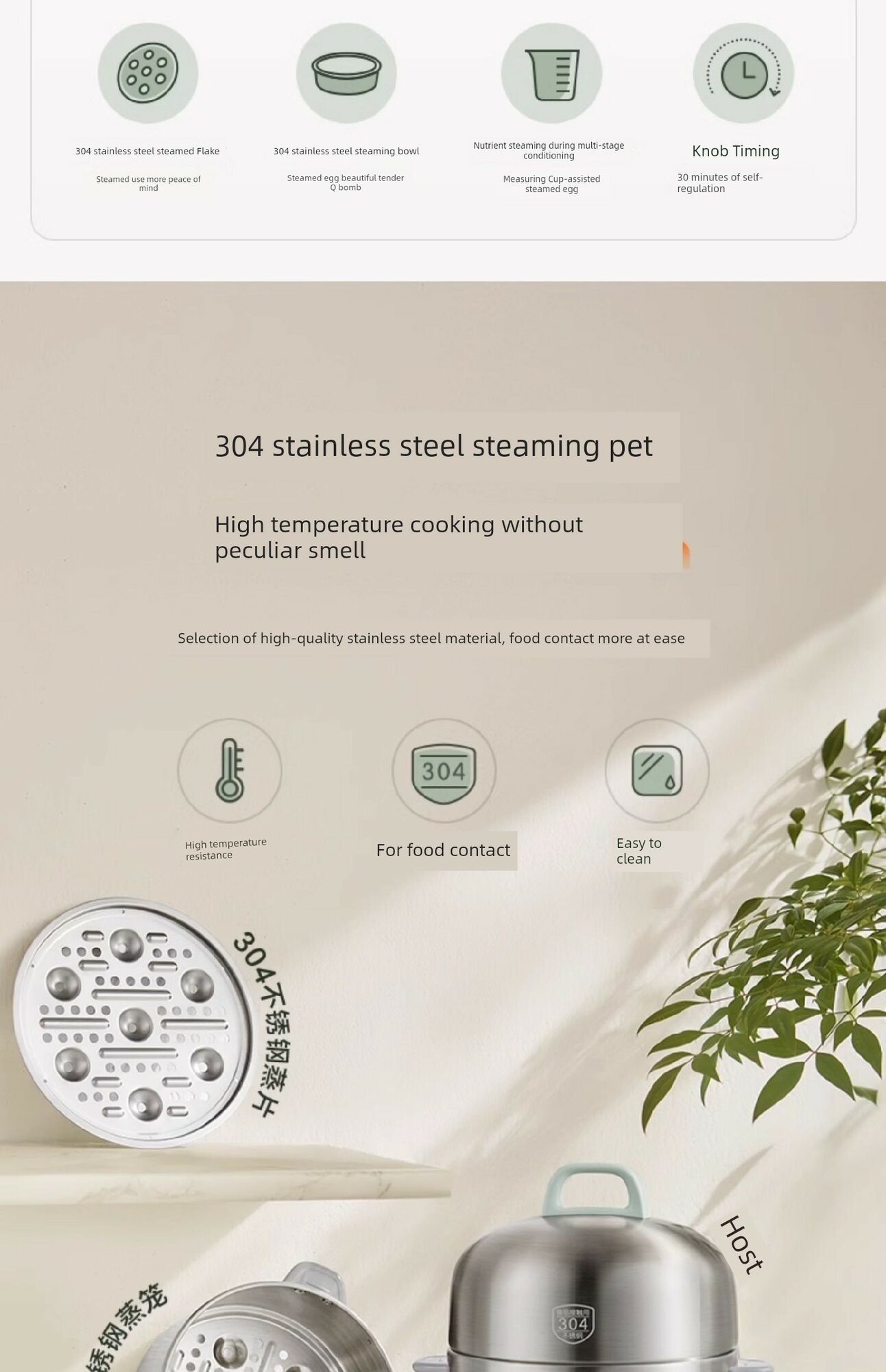 | Подробная комплектация | Мерный стакан, пароварка из нержавеющей стали 304, пароварочная чаша из нержавеющей стали 304, прокладка из нержавеющей стали 304 |