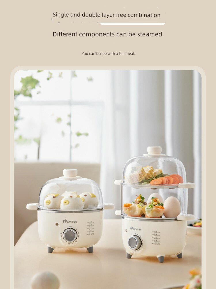 Купить Двухъярусная автоматическая яйцеварка-пароварка - Бежевая (нержавеющая сталь)