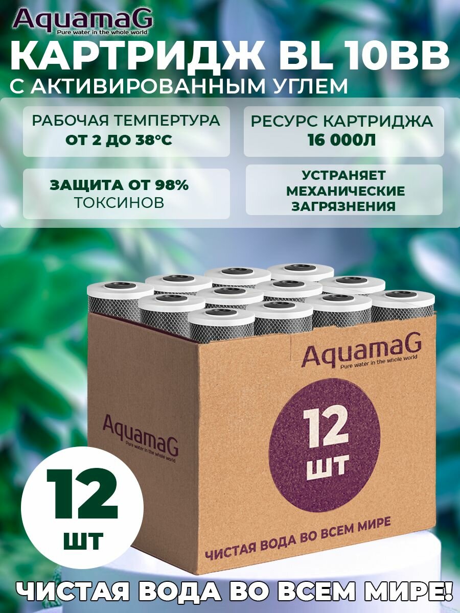 Угольный картридж для фильтра AquamaG BL 10BB , для сорбционной очистки воды (от хлора и органических соединений) 12 шт интересное: