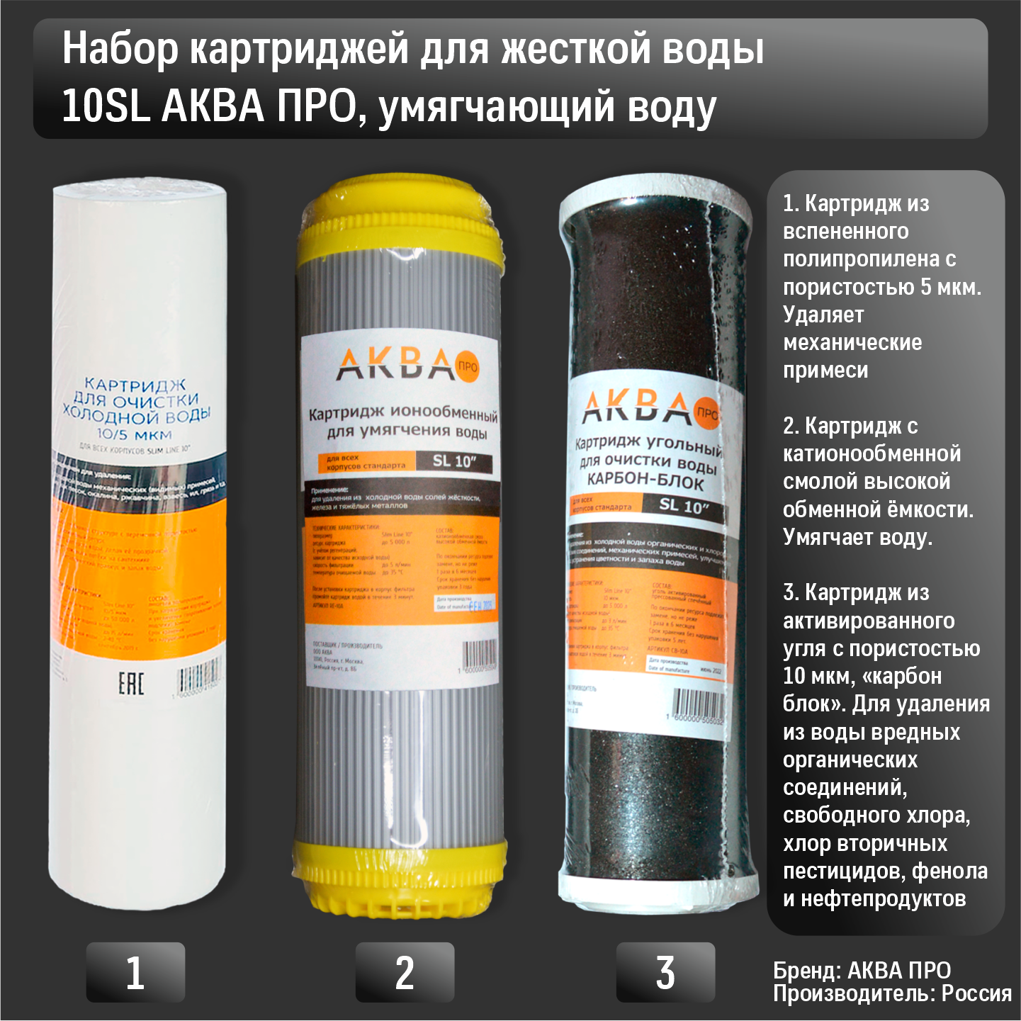 Набор картриджей комплект аквапро для жесткой воды , умягчения 10SL интересное: