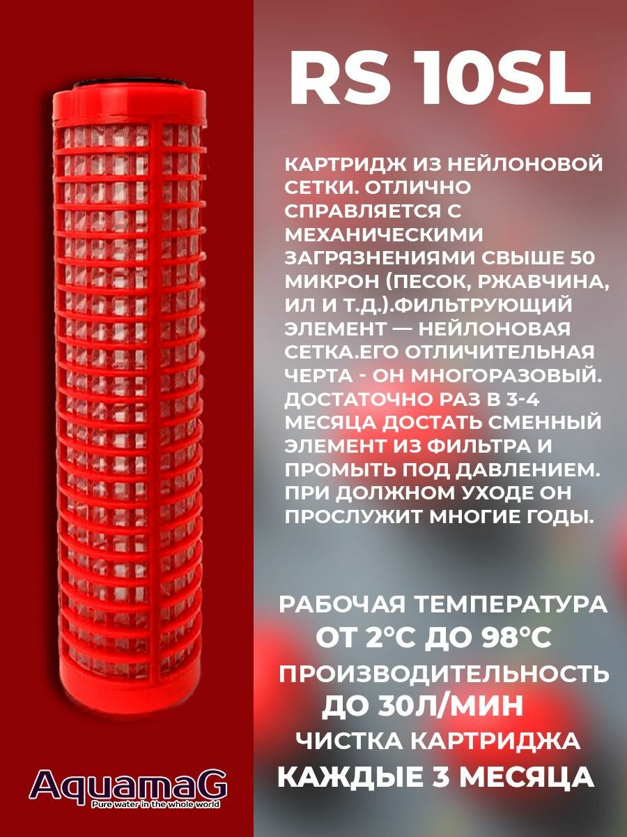 Картридж из армированной сетки RS 10SL для механической очистки горячей воды 50 мкм. Многоразовый 2 шт интересное:
