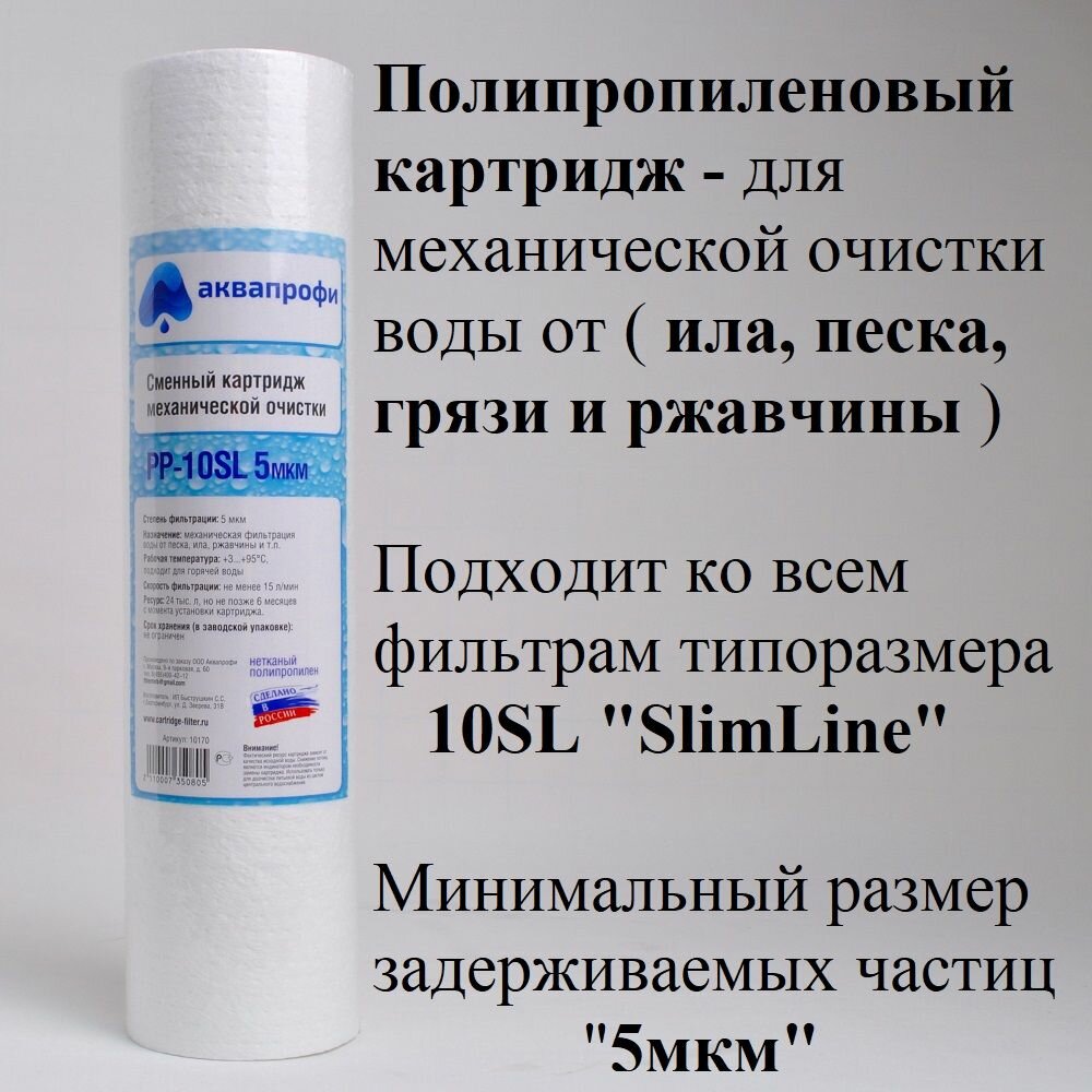 Сменный картридж фильтра для воды аквапрофи PP-10SL 5мкм - 5шт интересное: