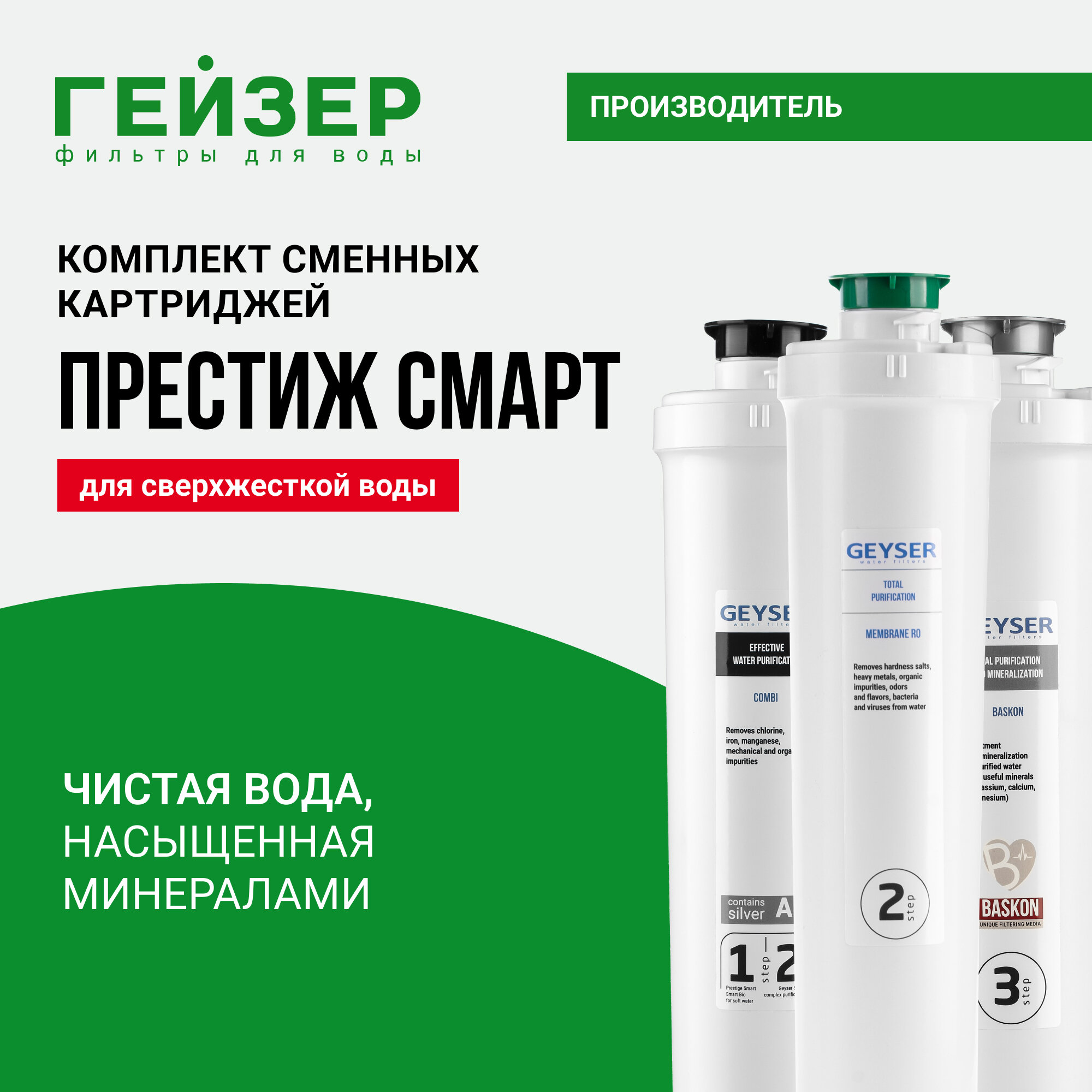 Купить Комплект картриджей Гейзер Престиж Смарт, разработан для системы обратного осмоса Престиж Смарт, 50124