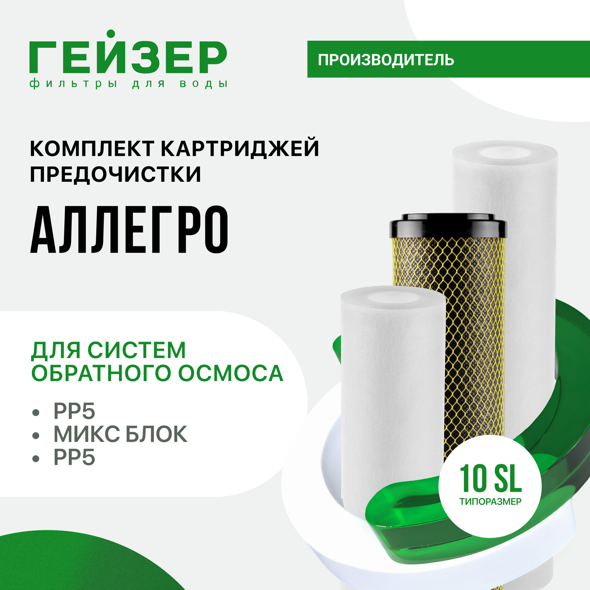 Купить Комплект картриджей Гейзер Аллегро 10SL, 1-3 ступень очистки, защищают мембрану от механических примесей, 50177