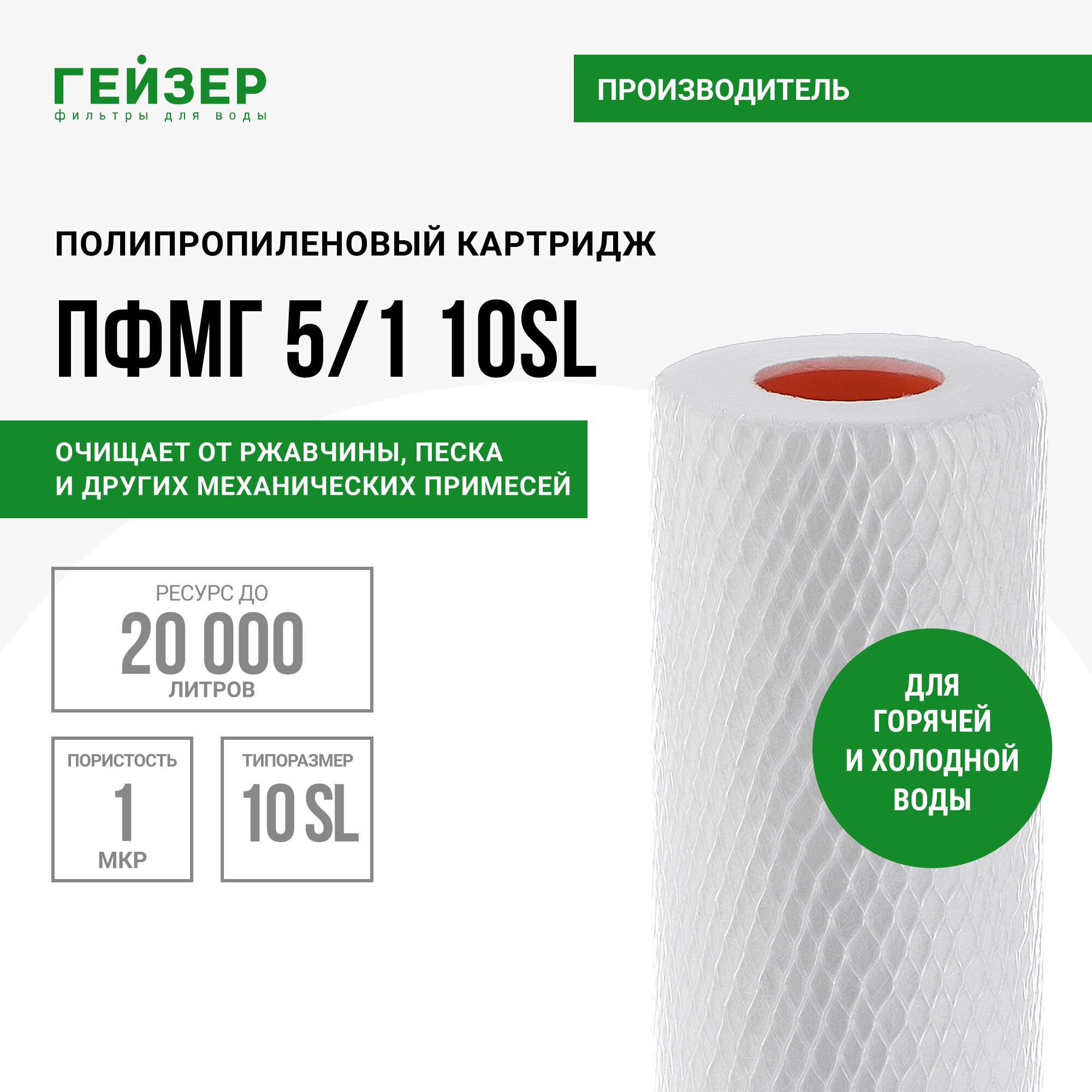 Купить Картридж механический Гейзер пфмг 5/1 - 10SL, для горячей воды, убирает ржавчину, песок, ил и др. примеси, 28230