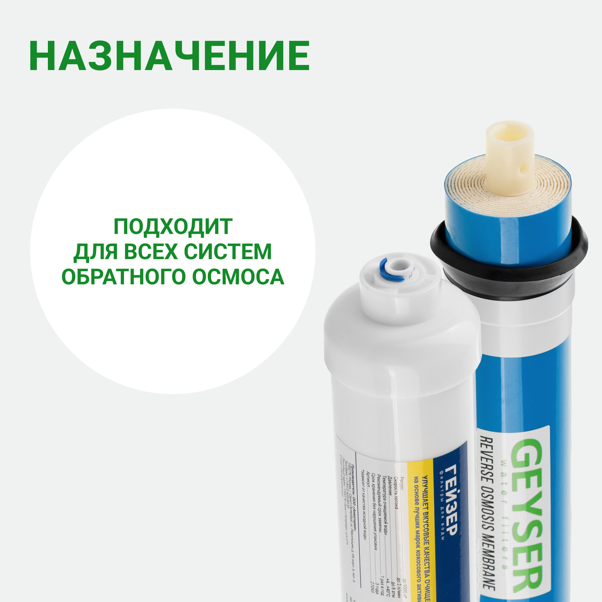 Набор картриджей для систем обратного осмоса мембрана + постфильтр, очистка от любых примесей, от вирусов, 50178 интересное: